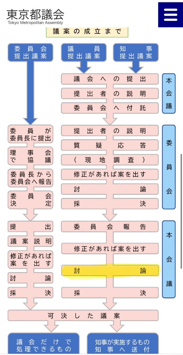 明日は定例会の閉会日です 議案に対して採決(○✖️)をしますが その前に討論があります 討論とは 各会派・議員による賛否・意見表明ですが 無所属4名は討論に出れません 賛否の意見表明もできない こんな都議会のあり方、どう思いますか?