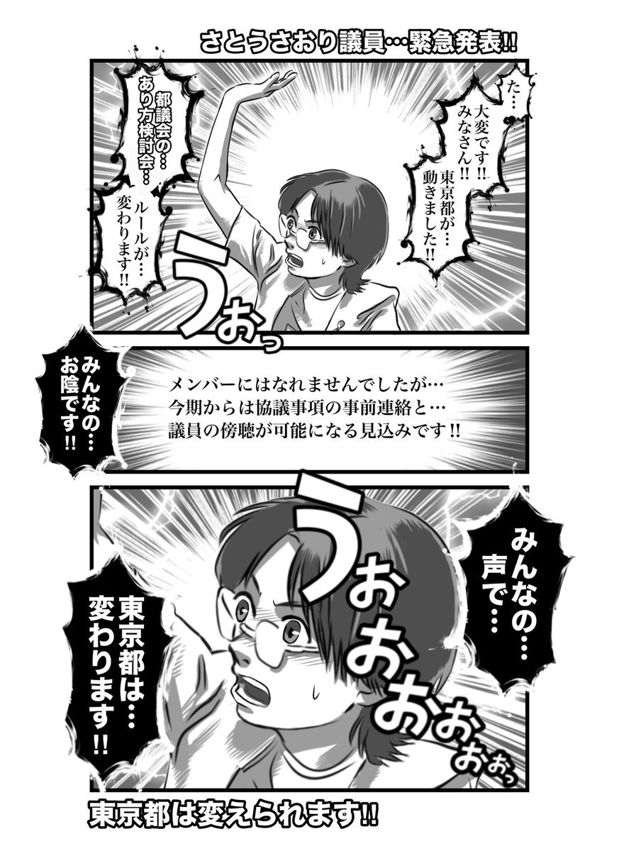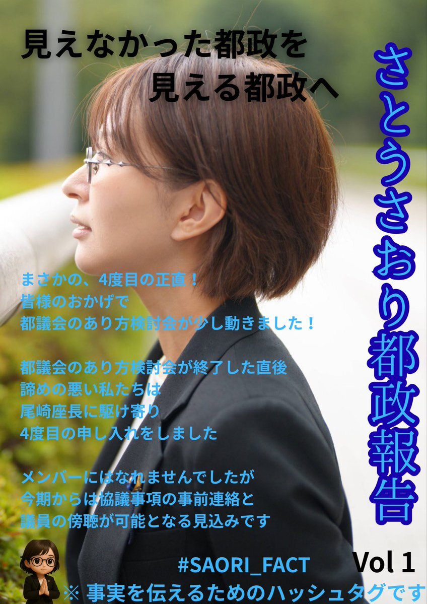 【超朗報】少数会派無所属会派、秘密会議と言われる東京都議会在り方検討会に参加出来ることに! 4回目の要望でやっと都議会が動き出した。 政治は生活に直接影響します。 国民都民が声を上げれば政治も変わる! #さとうさおり都議会議員 #東京都議会 pic.x.com/QV36tTsO7M x.com/satosaori46/st…