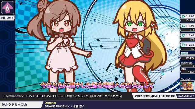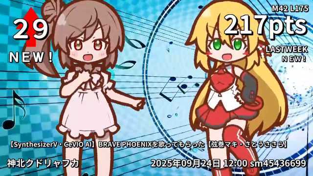 マキちゃんとささらちゃんによる「BRAVE PHOENIX」が29位をいただきました。ありがとうございます! #弦巻マキ #さとうささら 週刊VOCALOIDマイリスト+いいね!ランキング #349 nicovideo.jp/watch/sm454819… pic.x.com/gyf7GEcivK