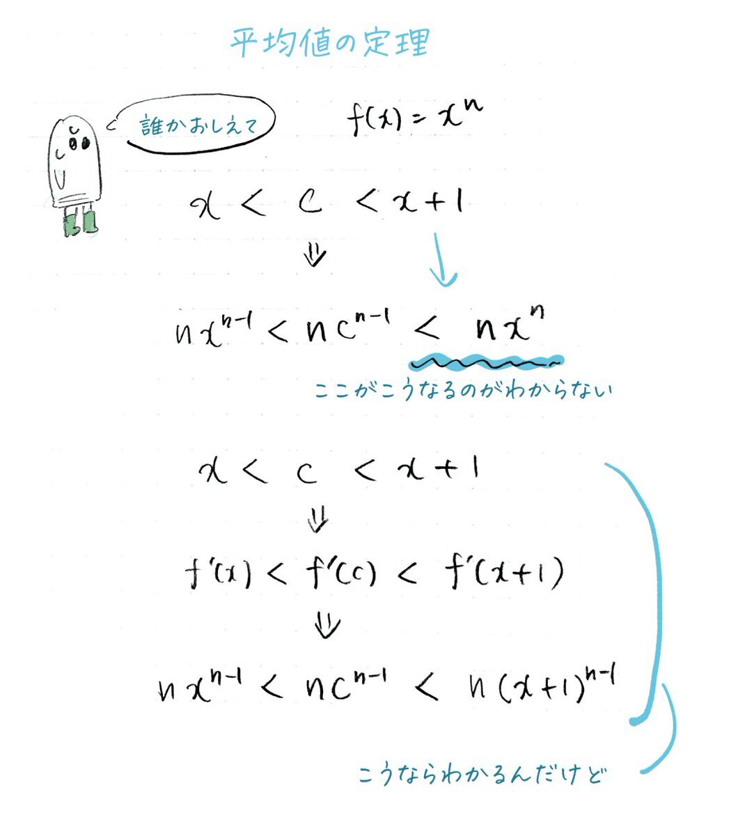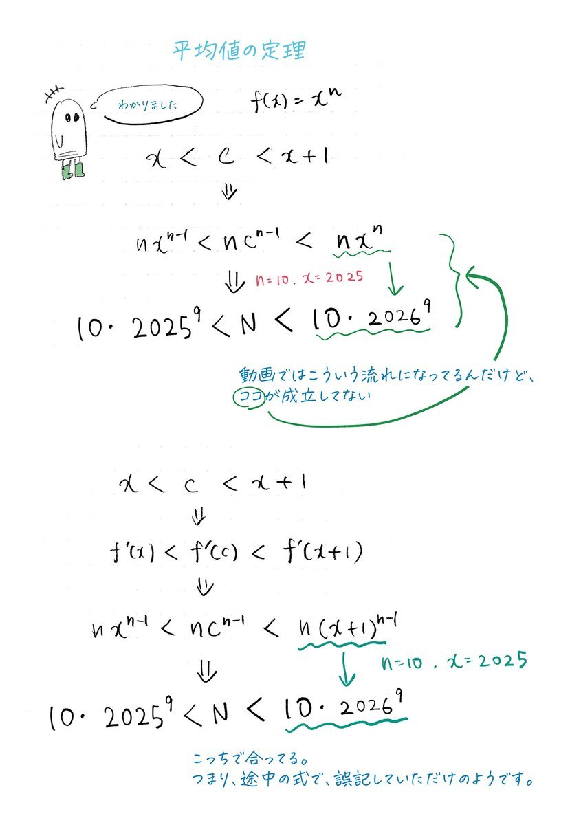 リプライしてくださった方のおかげで、解決できました。ただの誤記だったようです。 #数学 #平均値の定理 #さよなら数学 pic.x.com/wghHDjETZu x.com/tatenokazuhiro…