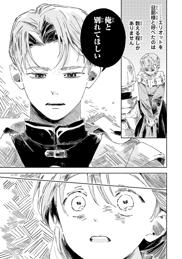 #さよなら英雄になった旦那様 ・エリオット&エミリー 不死魔獣との戦場で覚醒した聖騎士と、それを支える聖女。戦場で支え合ううちに心を通わせた結果、エリオットは妻フローラに離縁を告げることに。だが、それぞれ聖剣と聖女の力に陰りが見えて――? pic.x.com/KEB1W7YMkt