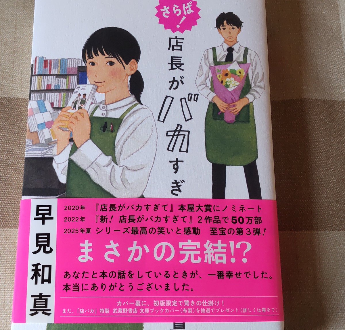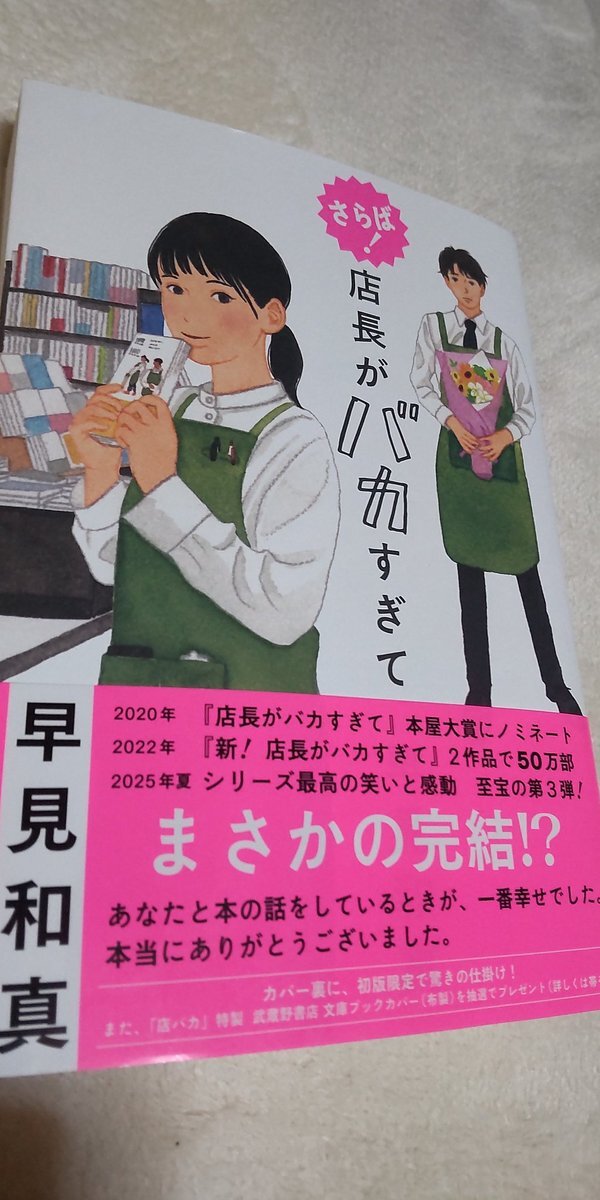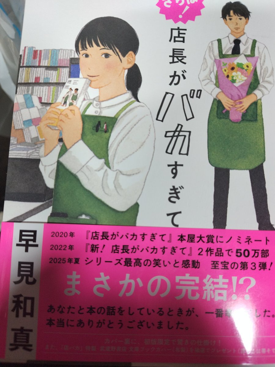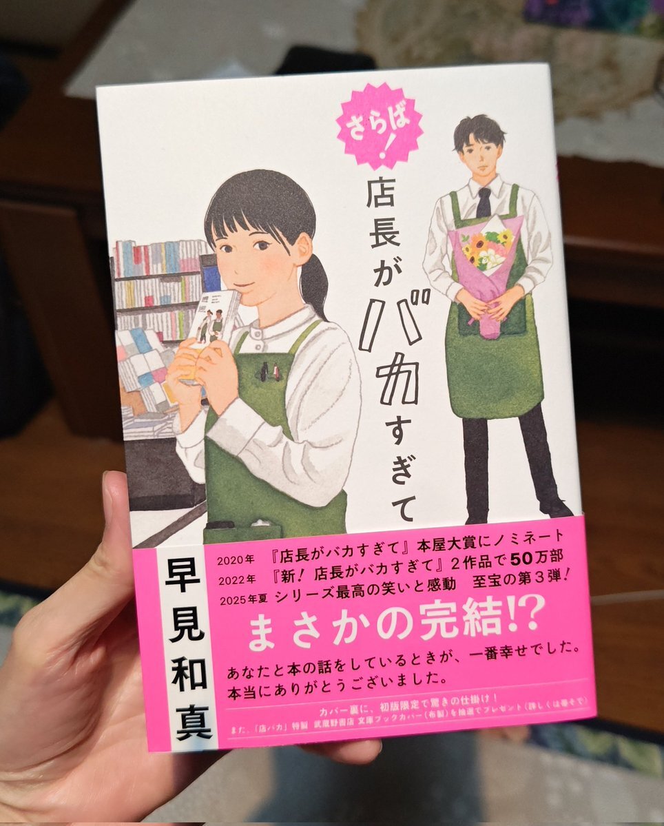 #読了 #さらば店長がバカすぎて #早見和真 まさか店長に泣かされるとは。作者の書店愛があふれた一冊。 そして谷原京子は自分の本当の気持ちに気づく!? 笑って、泣いて、また笑って。3部作完結編にふさわしい傑作。 カバーをひっくり返すと武蔵野書店ブックカバーだよ #読書好きな人と繋がりたい pic.x.com/Fr7hFW0ptu