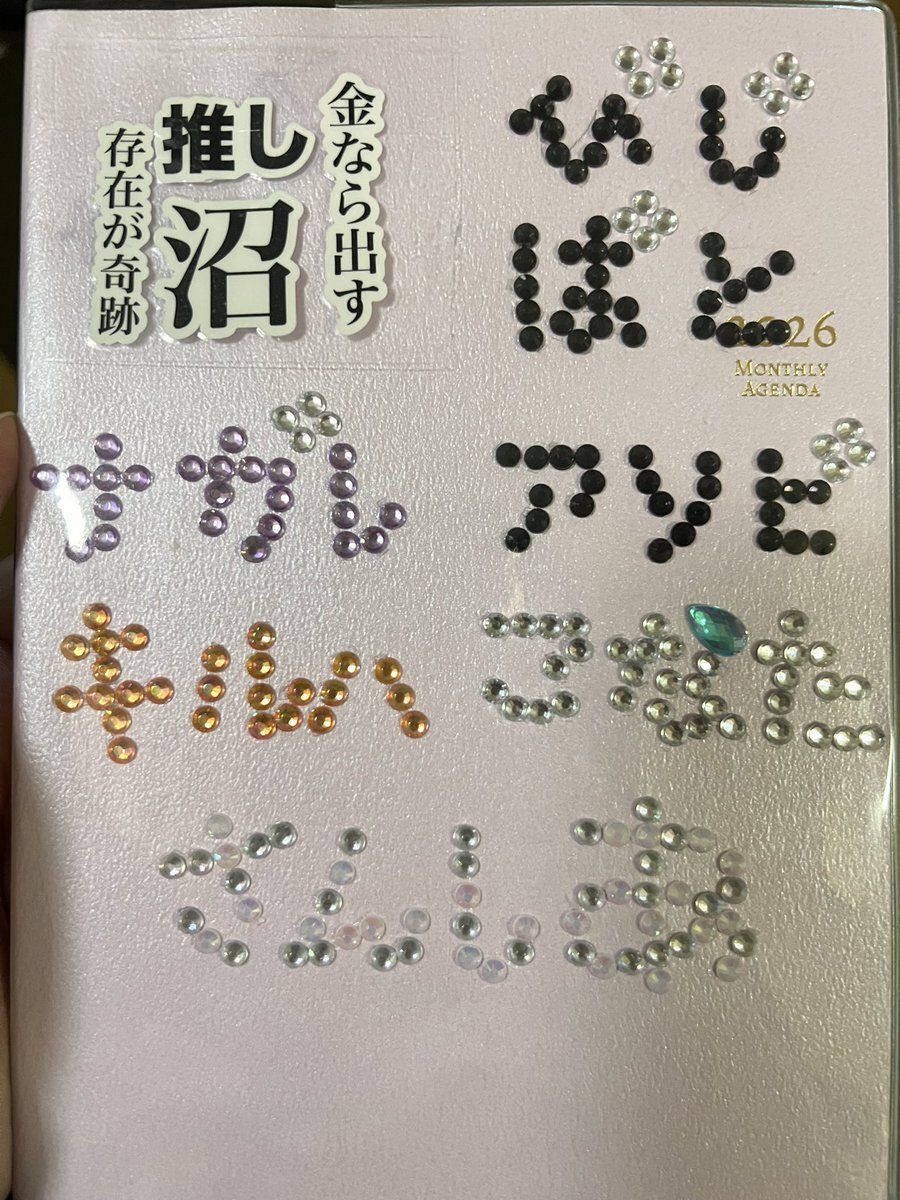 仕事の息抜きに残ってたラインストーンで推し活用のスケ帳デコった 難しかった…っ それと下書きが… #びじ絵 #描いてやったぞ苑楽 #ナガレアート #此方ぁと #さんしあーと #キルハあーと pic.x.com/ucOyHyeM82