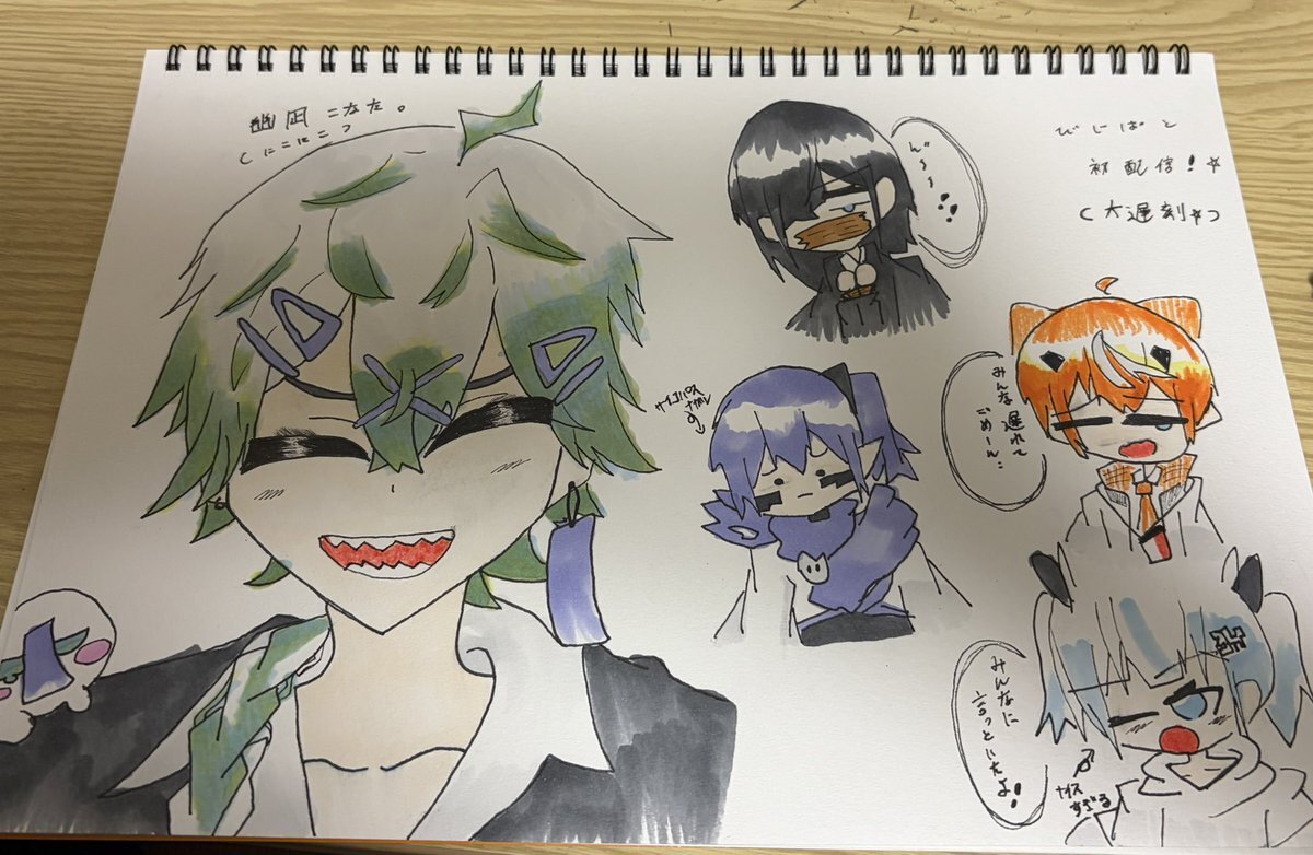 初めてVTuberグループで推しに出会えた記念…この5人の空気感がすごく好き💖 昨日の初配信も面白かったし黒字になってくれぇ‼︎な思いで人生初スパチャもしてしまった🥹これからも頑張って下さい #びじ絵 #描いてやったぞ苑楽 #此方ぁと #さんしあーと #ナガレアート #キルハアート pic.x.com/7hJAX7rOG2
