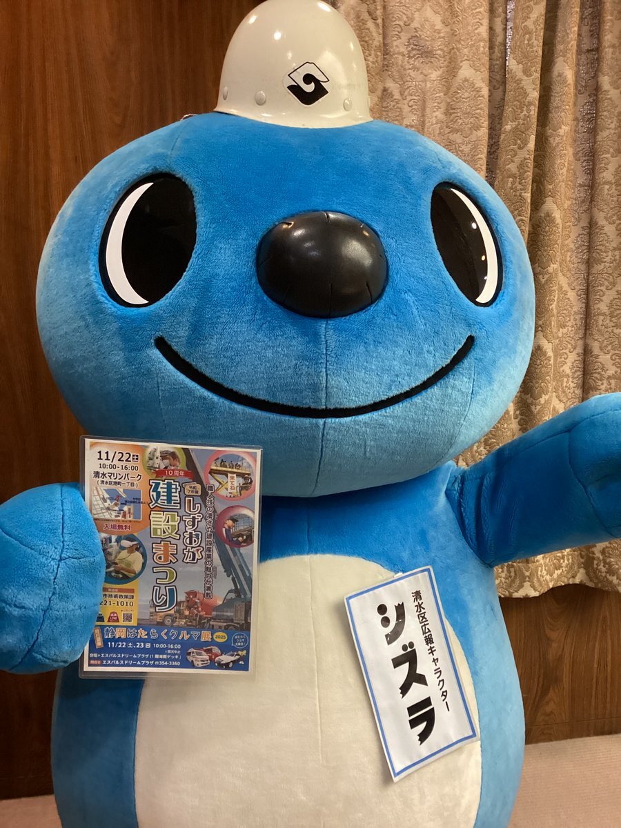 11/22(土)に、#しずおか建設まつり に遊びに行くズラ~! クレーン車や高所作業車などの体験乗車、ARやVR体験、鉄筋工や配筋工などの職業体験など、子どもから大人まで楽しめるズラよ😊 今年度は、「#静岡はたらくクルマ展」とも同日開催! ぜひ遊びに来てズラね👍 #清水 #シズラ #建設産業 #10周年 pic.x.com/vjIu4ox5iU