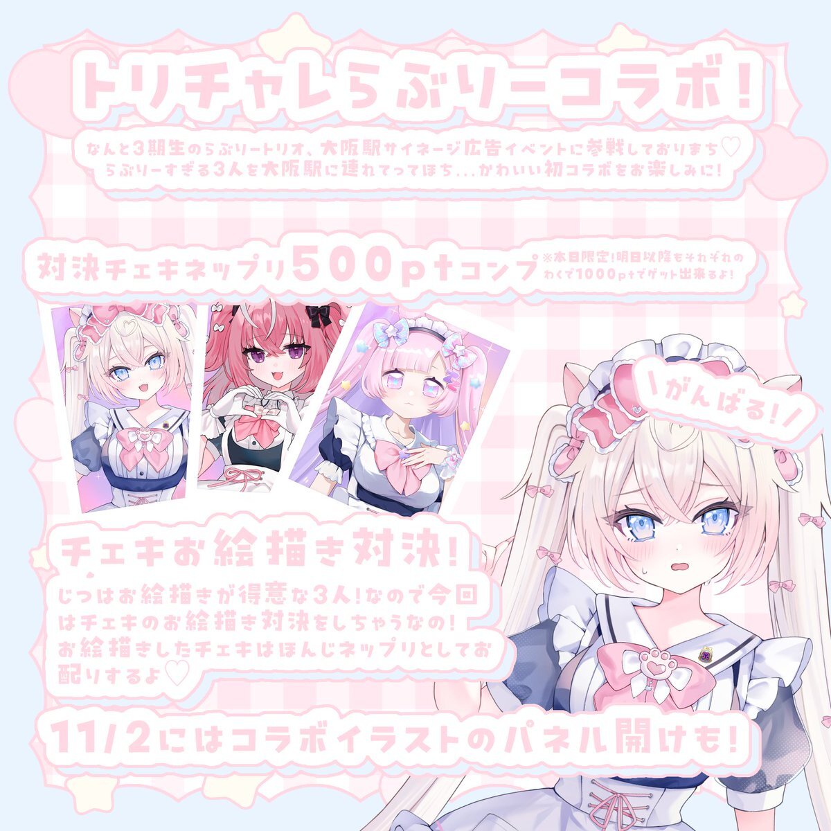 -` 🔔 ぴんぽんぱんぽん♩ 本日21:00〜のお給仕はねみぃたん・めうめうと3期生らぶりートリオのコラボ.ᐟ なんとしゅサンが出ているイベント、入賞したら3人のサイネージ広告が大阪に…これは大変応援してもらうしか、ないっ^ ̳- ‧̫ • ̳^🎀🪄⌒♡。. 🔗x.gd/momo33 #しゅしゅとりーむ pic.x.com/HCTm83Nc6h