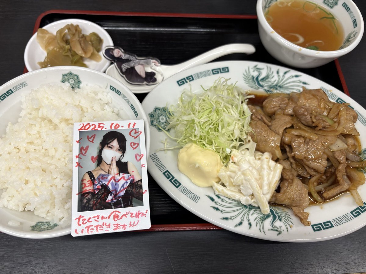 今日のお昼 #日高屋#しょうが焼き定食 最愛の推し #ジェネガ のラップ #吉沢ナナ ちゃんのチェキと一緒 おっきなステージの推し 雨だけど 楽しむよ❣️ #ななちゃんズ 食レポ pic.x.com/Vhseuy1vEG
