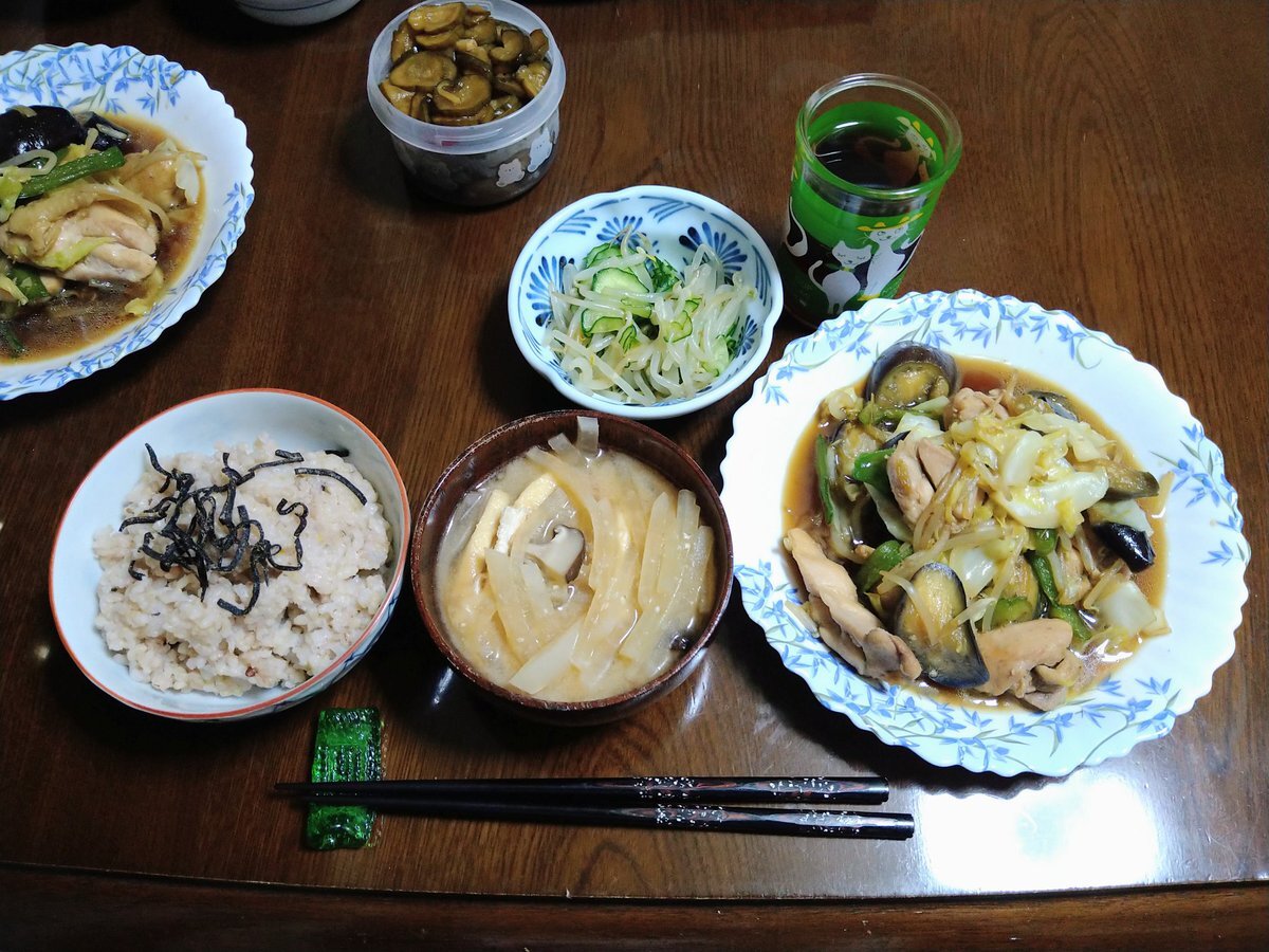 レッスンが済めば夕食の支度、 五目しょうゆ炒め(鶏もも肉・もやし ・キャベツ・ナス・ピーマン)と ゆでもやし・きゅうりの浅漬け風に みそ汁♪ あーちゃん、今日もおつかれサメ。 #今日の夕食 #しょうゆ炒め #浅漬け風 #みそ汁 #おつかれサメ #奥さんを讃えよ #奥さんラブ #奥さんがいるから頑張れる pic.x.com/qiTMlqWZxs