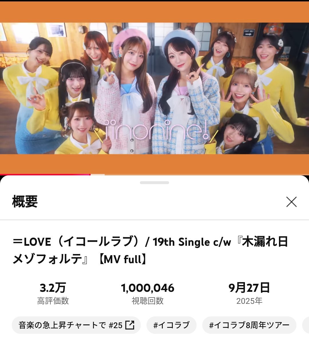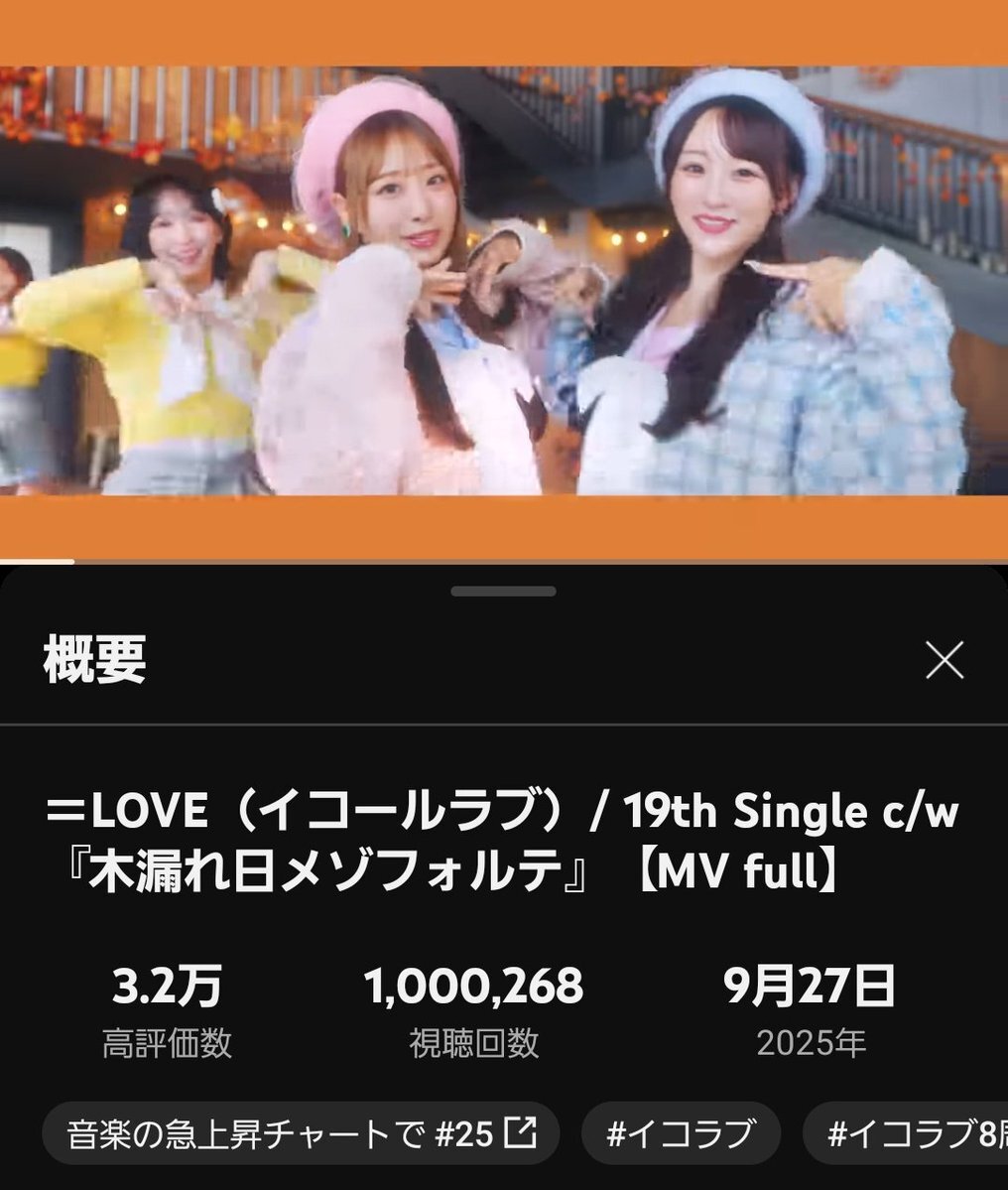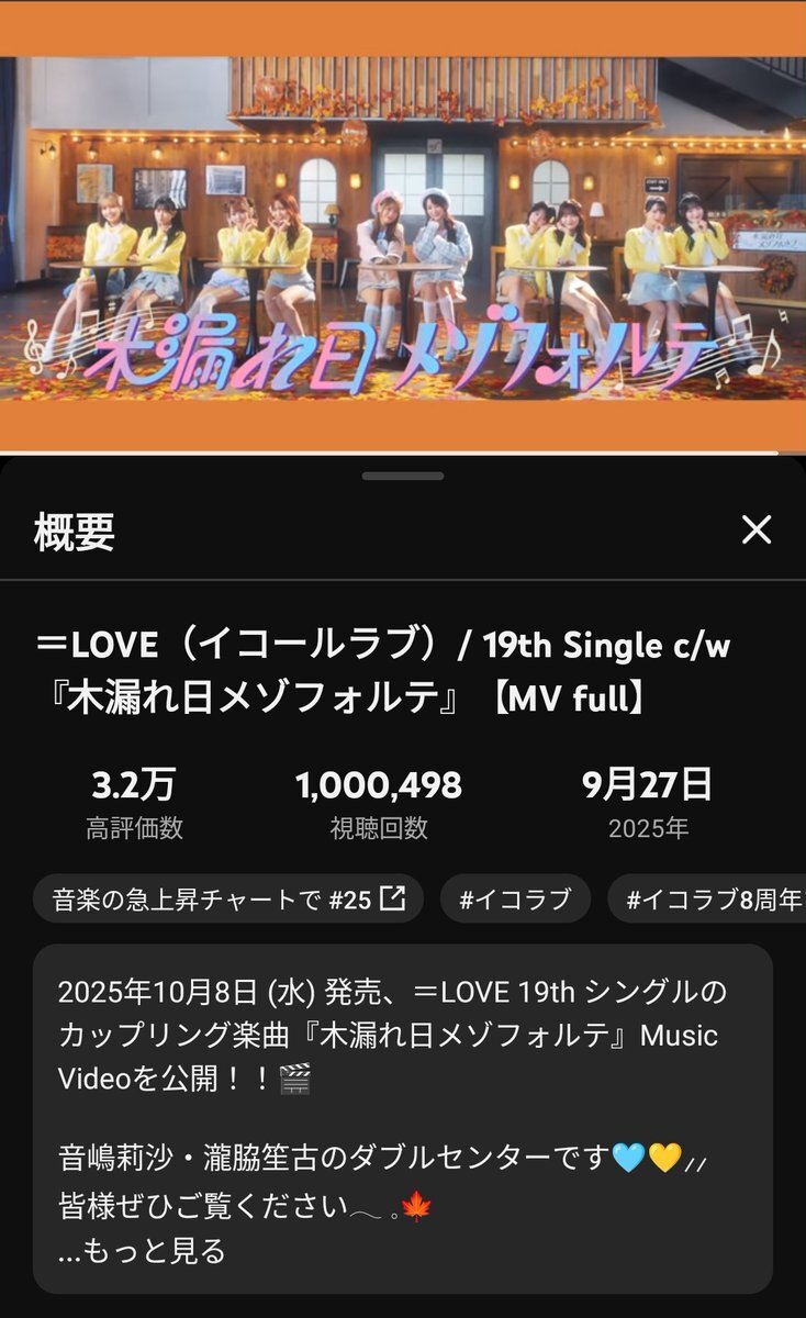 =LOVE(イコールラブ)/ 19th Single c/w『木漏れ日メゾフォルテ』 発売日に100万回再生 おめでとう!まだまだ見るよ!😊 【MV full】 youtu.be/4xBmuiQNGdc?si… @YouTubeより #イコラブ #木漏れ日メゾフォルテ #しょこりさ pic.x.com/RMWJWqFBkw