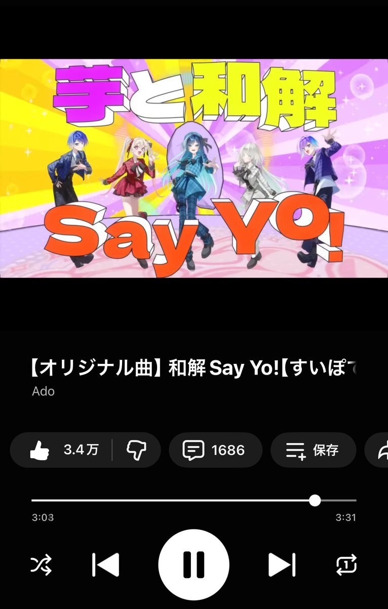 今日の1曲💙 【Ado・すいぽて!】 和解Say Yo! ツッコミどころ多くて本当に可愛いグループ🍠 朝からリピートで聴いてます🎧 芋けんぴ刺したろか?ここ1番好きです #Ado #すいぽて #和解SayYo pic.x.com/LkRN7rpBsA