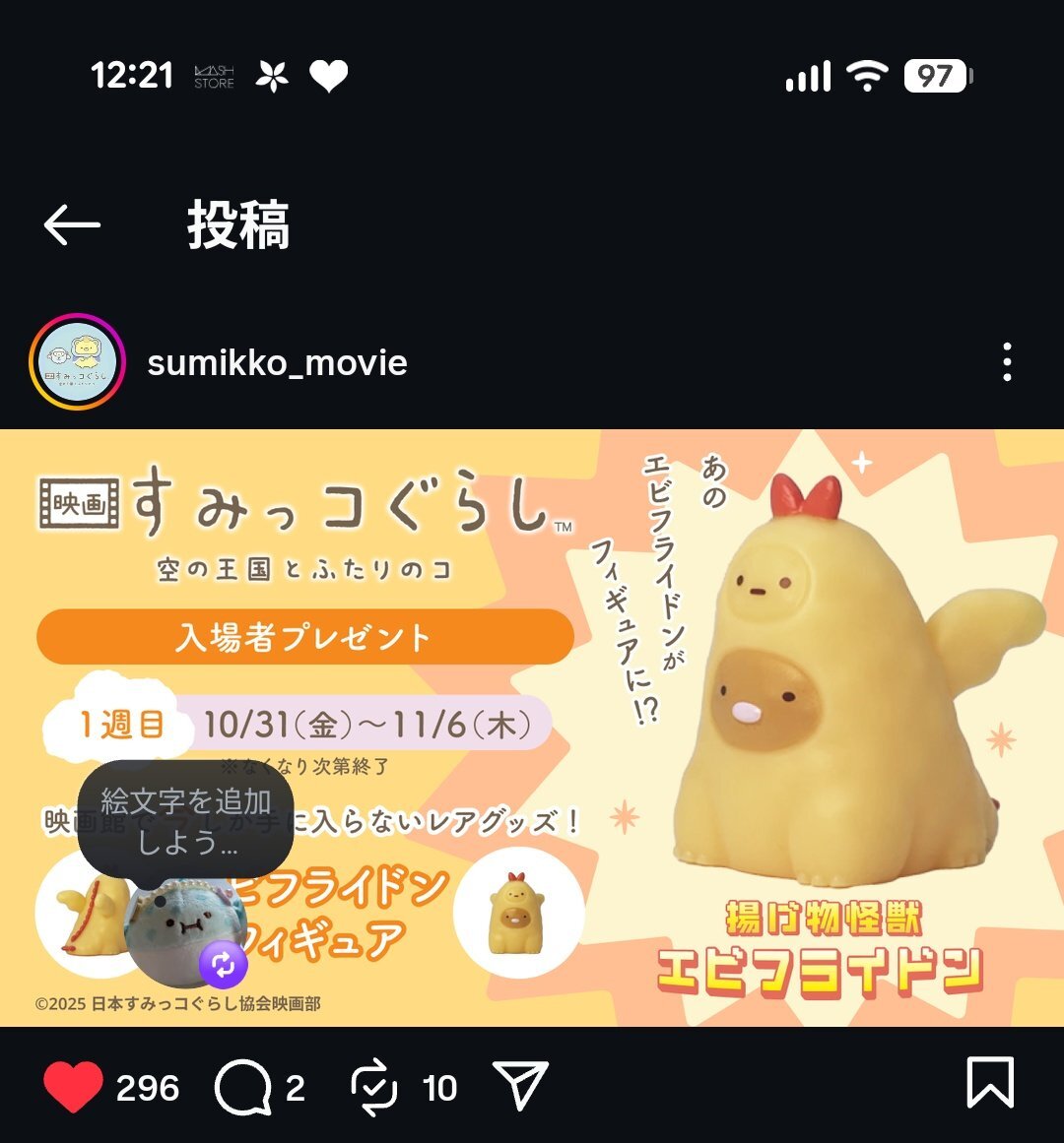 エビフライドン!? ヤバ!可愛い(>ω<) でも期間中に観に行けない(´;ω;`) #すみっコぐらし #すみっコぐらし空の王国とふたりのコ x.com/sumikko_movie/…