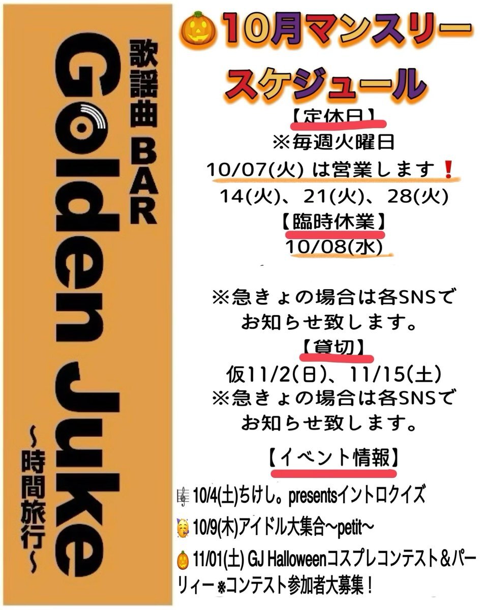 10/25(土)Op19時〜Cl24時 ⭐️10/24GJキャラオケdigest #斉藤和義 #ずっと好きだった #キャンディーズ #わな #城みちる #イルカに乗った少年 pic.x.com/LLgpyhqJTc