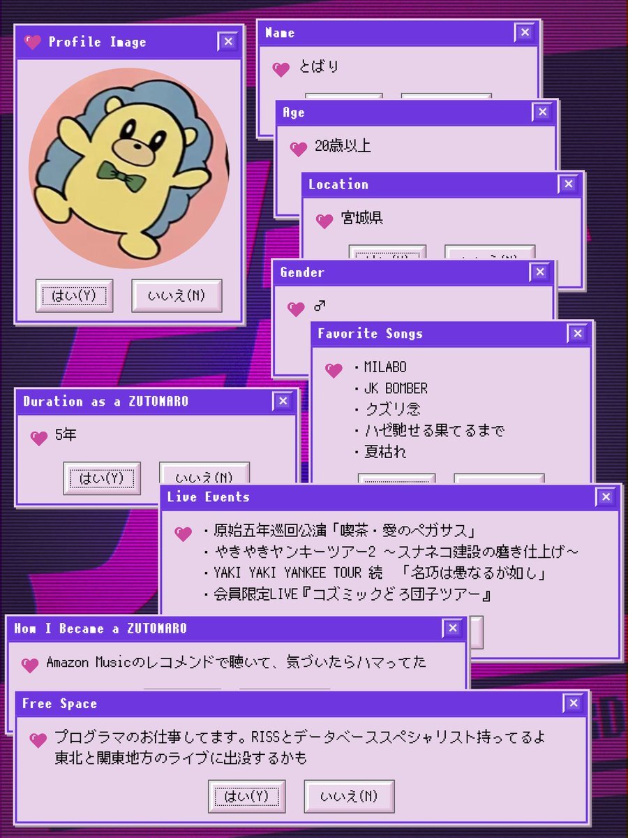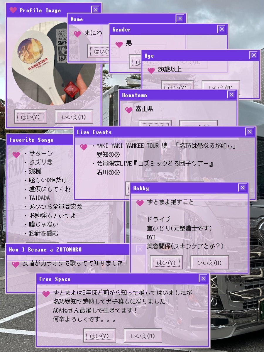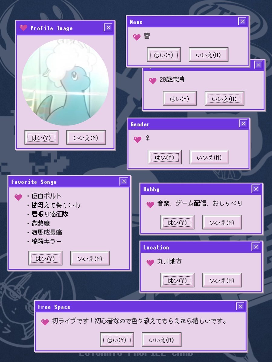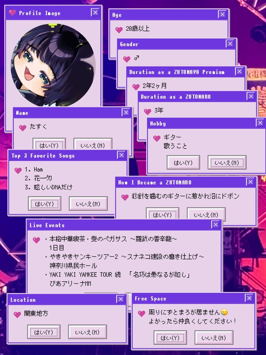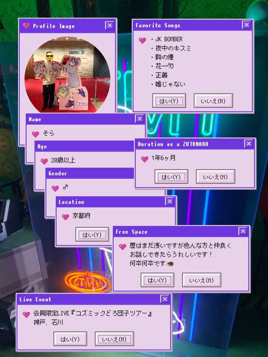 アカウントを作って1ヶ月経ったので、自己紹介カードを作ってみました。ずとまよ好きなみなさん、何卒何卒 #ずとまろさんと繋がりたい #ずとまよ好きと繋がりたい #ずとまよ自己紹介カード #ずとまろ自己紹介カード pic.x.com/lylCcp9iEQ