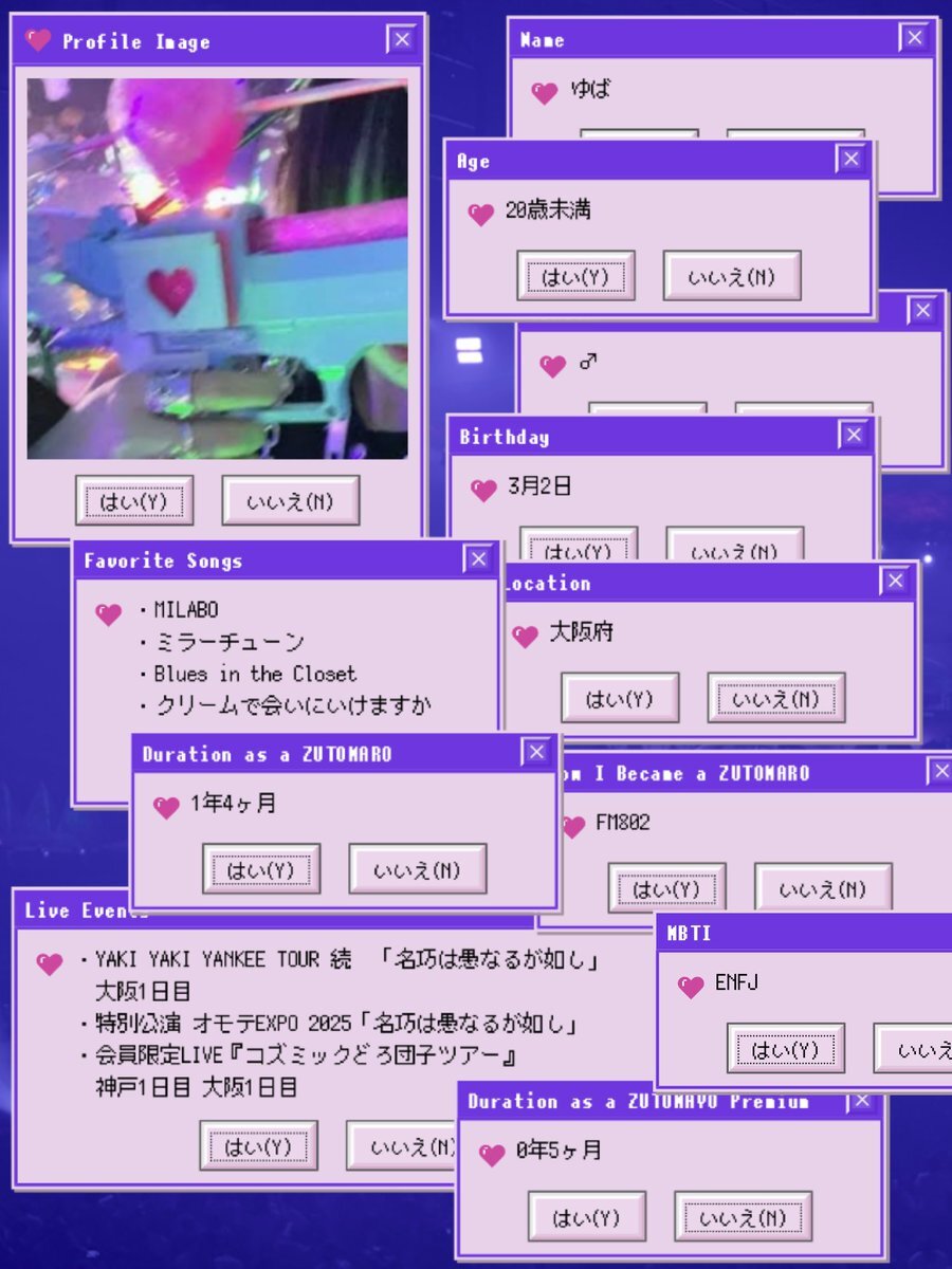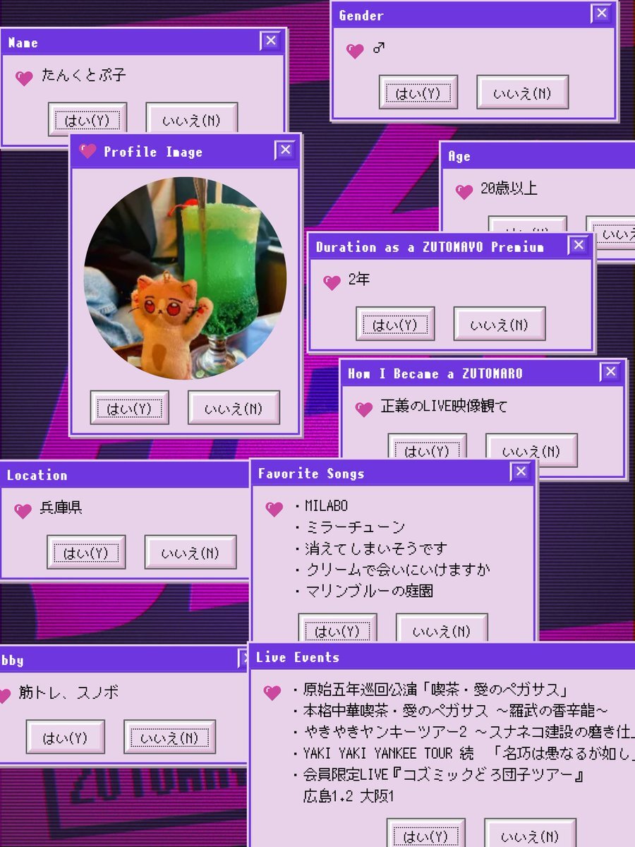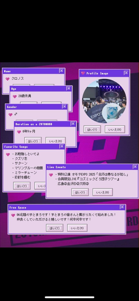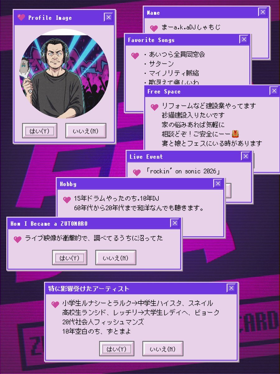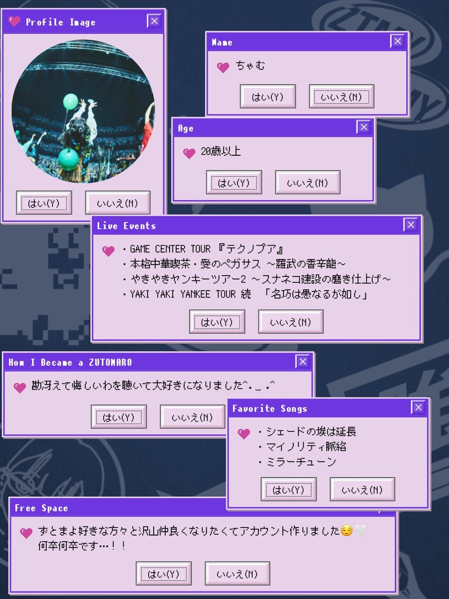 86世代のアラフォーです。音楽趣味になって25年になりますが、 ずとまよに超ハマってしまい、コズ団入会を機にXはじめました。気軽に絡んでください。もうすぐ初のずとまよライブです #ずとまよ #ずとまよ好きと繋がりたい #ずとまよ自己紹介カード @5WZSXNssKg97223 さんのテンプレを使用してます。 pic.x.com/Fmx0XzL7eP