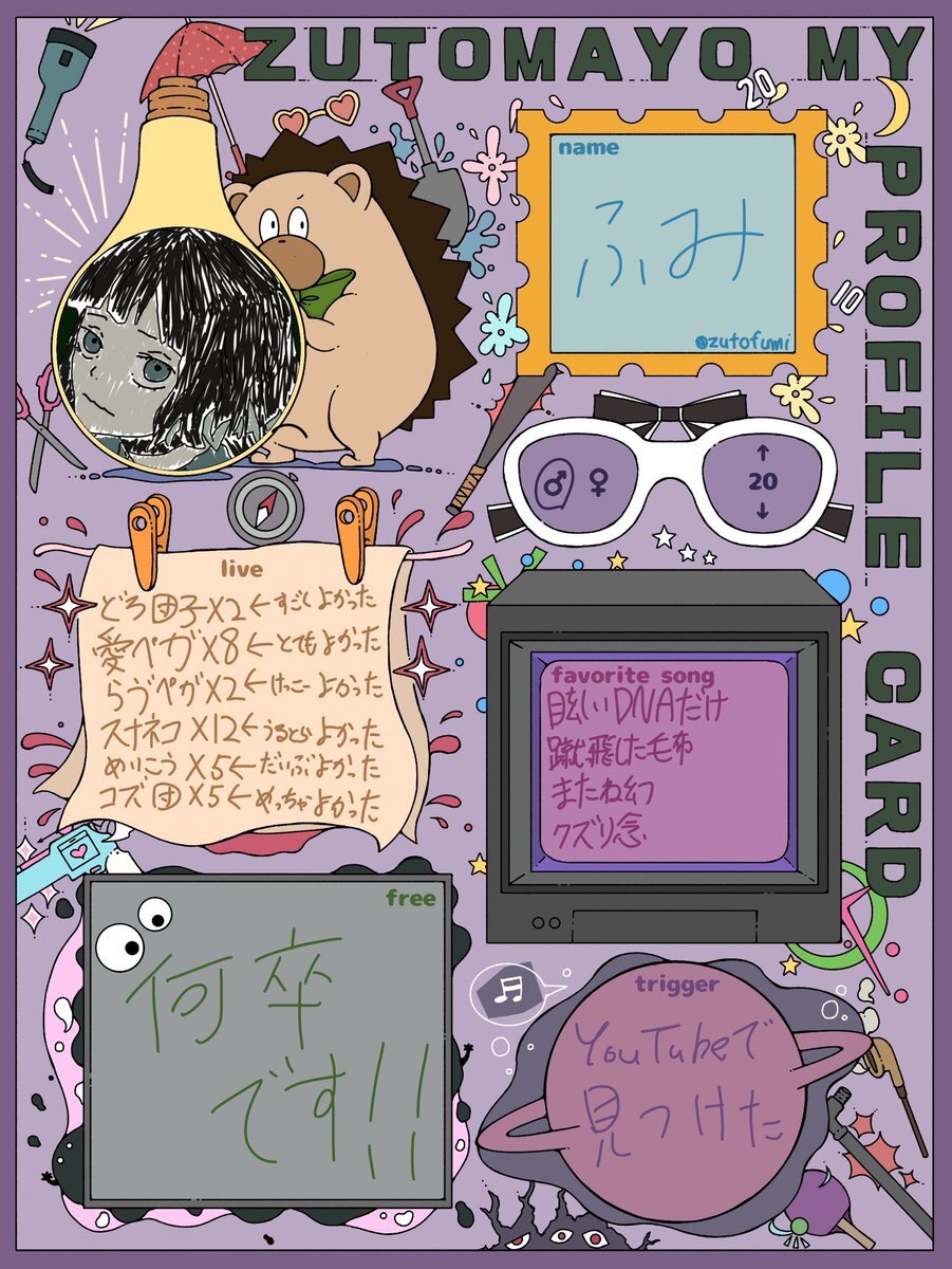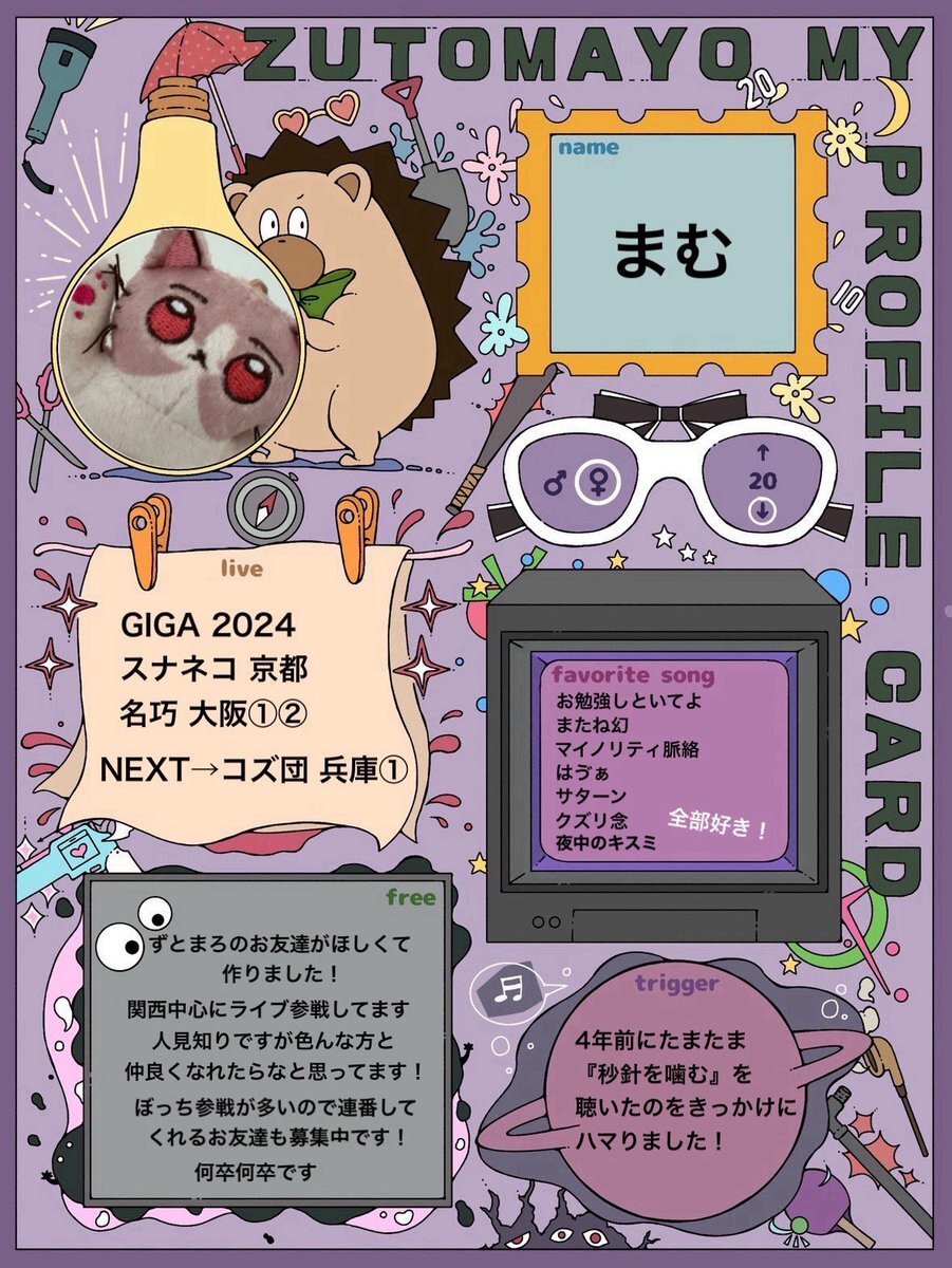 ずとまろ友達増やしたくて、コズ団に向けて新しく自己紹介カード作りました! 仲良くしてもらえるとうれしいです!何卒何卒です! #ずとまろさんと繋がりたい #ずとまよ好きと繋がりたい #ずとまろ自己紹介カード #ずっと真夜中でいいのに pic.x.com/nM5wuFU4GB