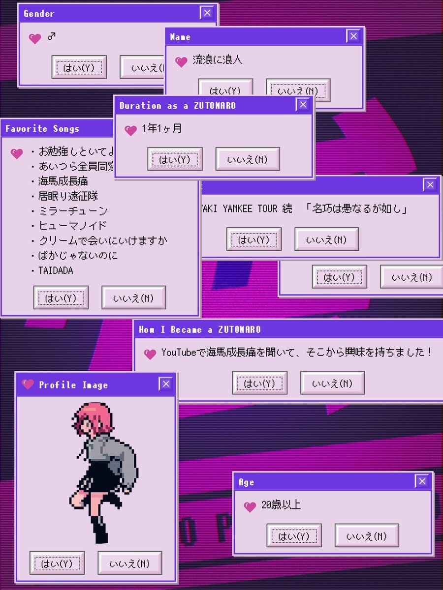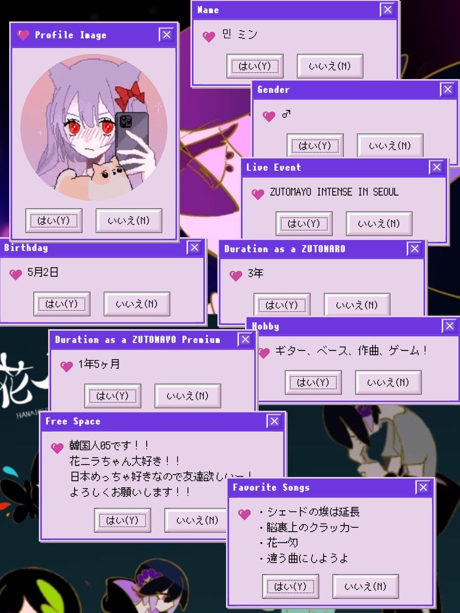 自己紹介なるもの作ってみた(固ツイ用) ずとまろ友達・趣味友欲しくて、動かし始めた午後2時30分、何卒何卒です…! #ずっと真夜中でいいのに #ずとまよ好きと繋がりたい #アニメ #アニメ好きと繋がりたい pic.x.com/rMthwvq94L