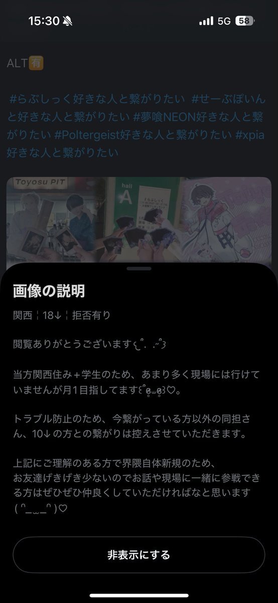 現場で会える人、一緒に行ける人、 絡める人探してます❕ 〜ALT有〜 ソロ参戦さみしいので お友達くださいᐡ ̳ᴗ ̫ ᴗ ̳ᐡ 全反応フォローDMいきます🩵 #らぶしっく好きな人と繋がりたい #xpia好きな人と繋がりたい #せーぶぽいんと好きな人と繋がりたい #メン地下好きな人と繋がりたい pic.x.com/vD7Yjzb8aC