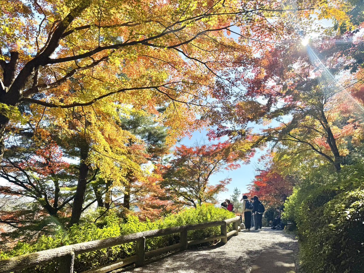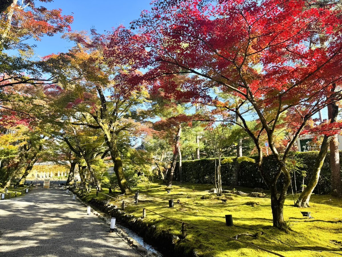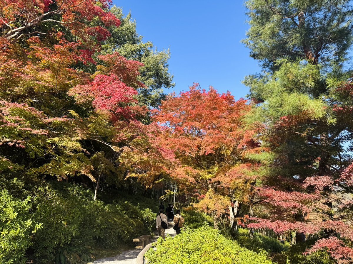 暖かい陽射しが嬉しい今朝、嵐山にある宝厳院に来ました☀️ 色づき始めた紅葉がお庭全体を彩り、木々の隙間からは青空と嵐山も見えて、紅葉のグラデーションが幾重にも広がっているよう...✨ 今後の色付きが、とっても楽しみです😊局員 #そうだ京都行こう pic.x.com/xFOBxOeseK