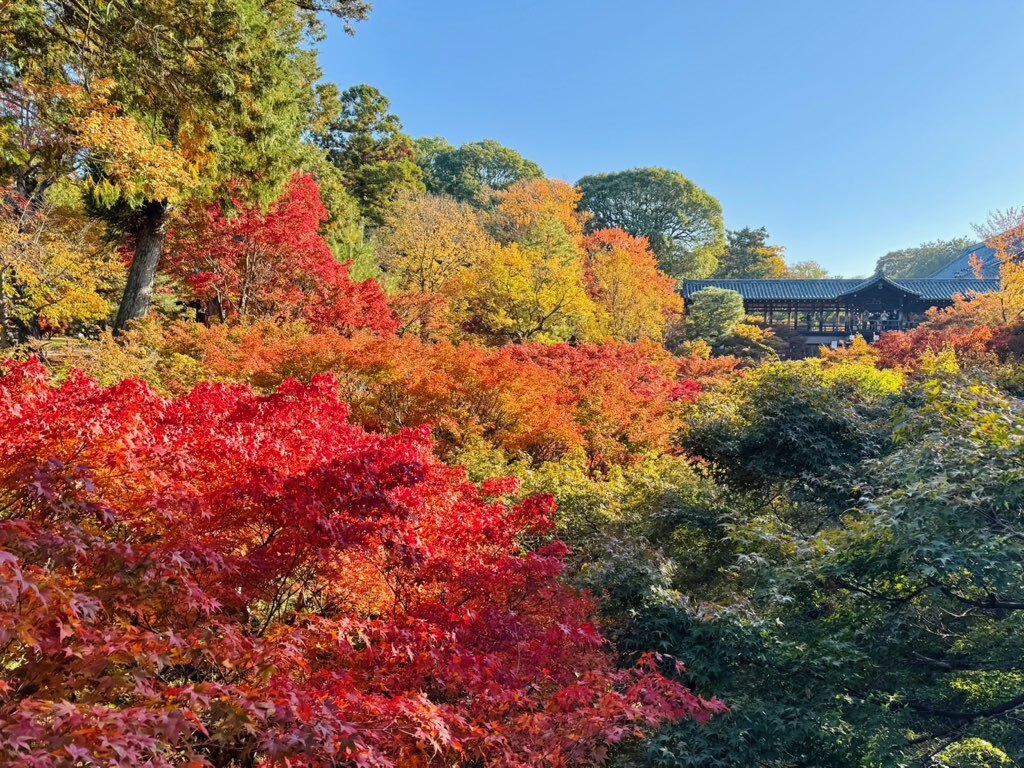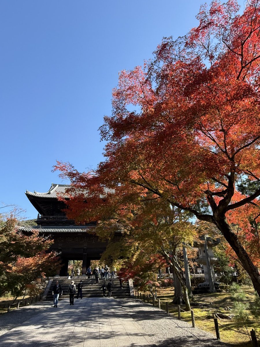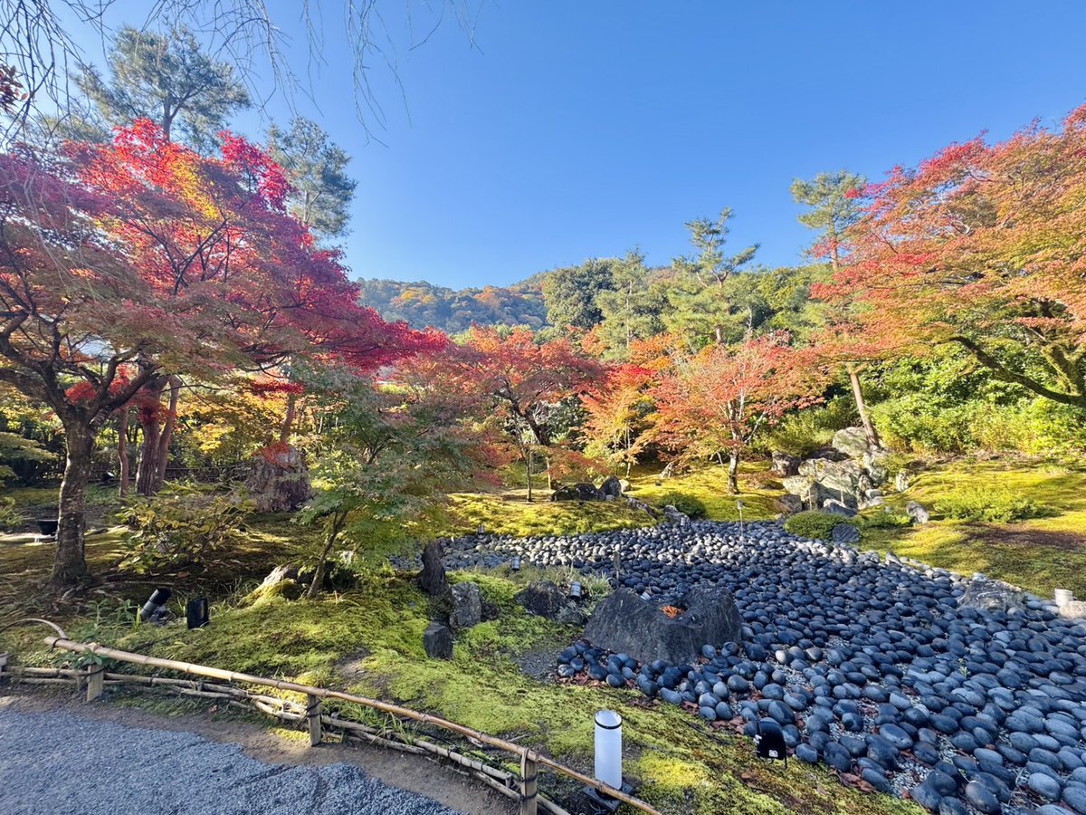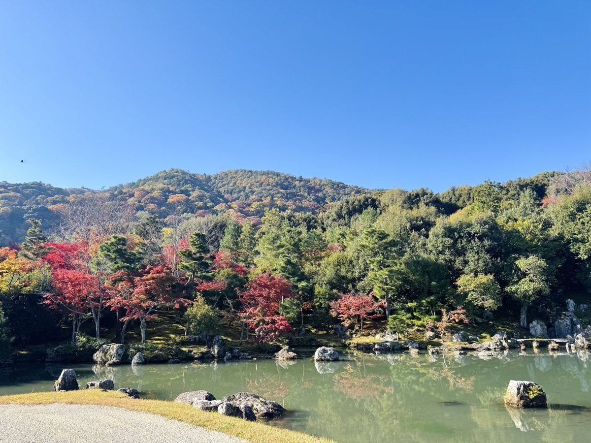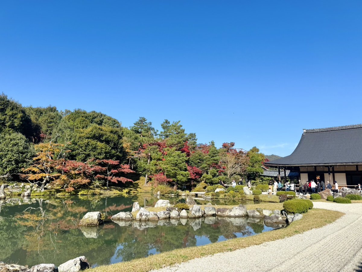 宝厳院から少し歩いて天龍寺へ。 曹源池に映る青空と紅葉のリフレクションが素晴らしい✨庭園では空を覆い尽くす程の美しい紅葉の回廊が出来ていました🍁 空気が美味しく、ポカポカ陽気の本日は、広いお庭で色とりどりの紅葉をゆっくりと堪能できましたよ😊局員 #そうだ京都行こう pic.x.com/fSaKq7jxuh