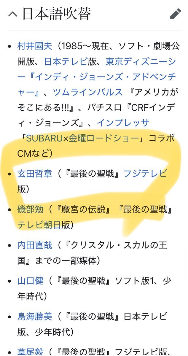 玄田哲章さんのインディ・ジョーンズ。 村井さんか磯部さんかとおもって放映見ていたら紛れもなく玄田さんの声でびっくりした思い出。 玄田さんインディとショーン・コネリーの若山さんという組み合わせも楽しかったよ。 #その声優さんが演じた意外な役 pic.x.com/Je1fmSOwKF