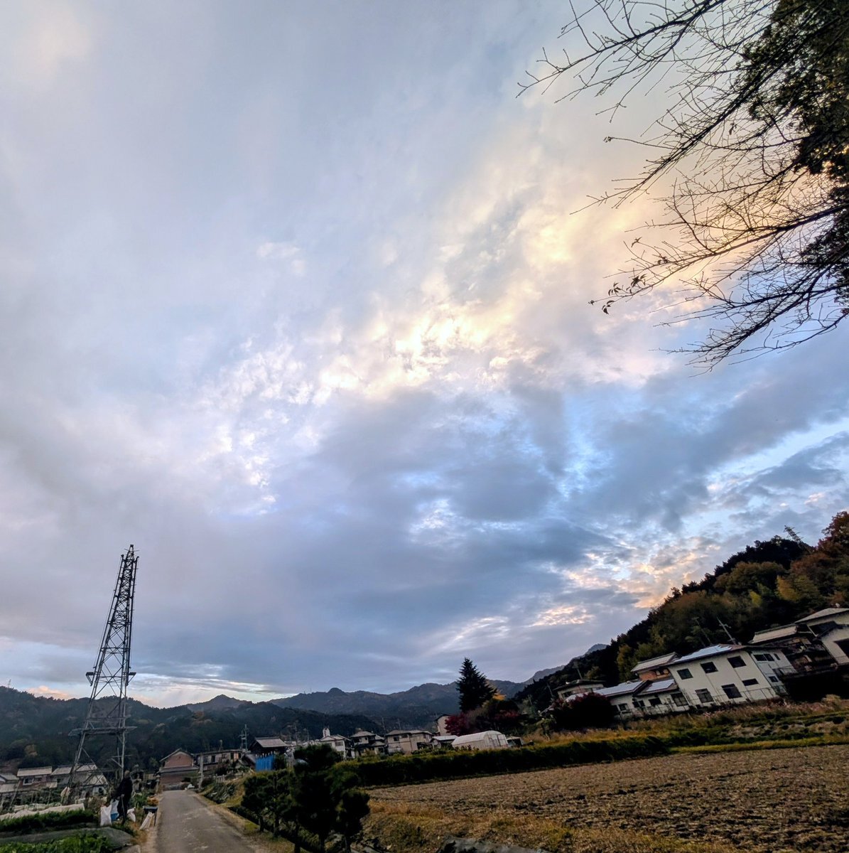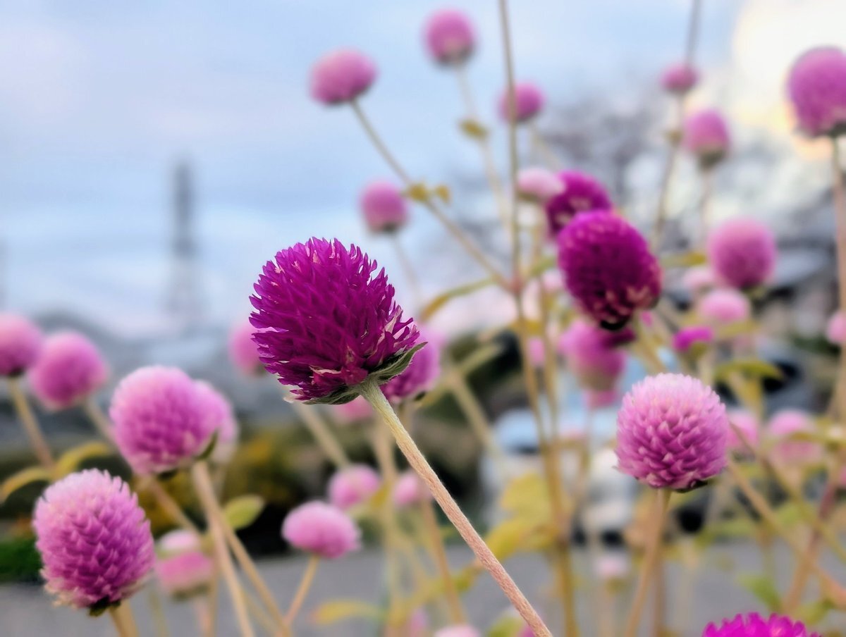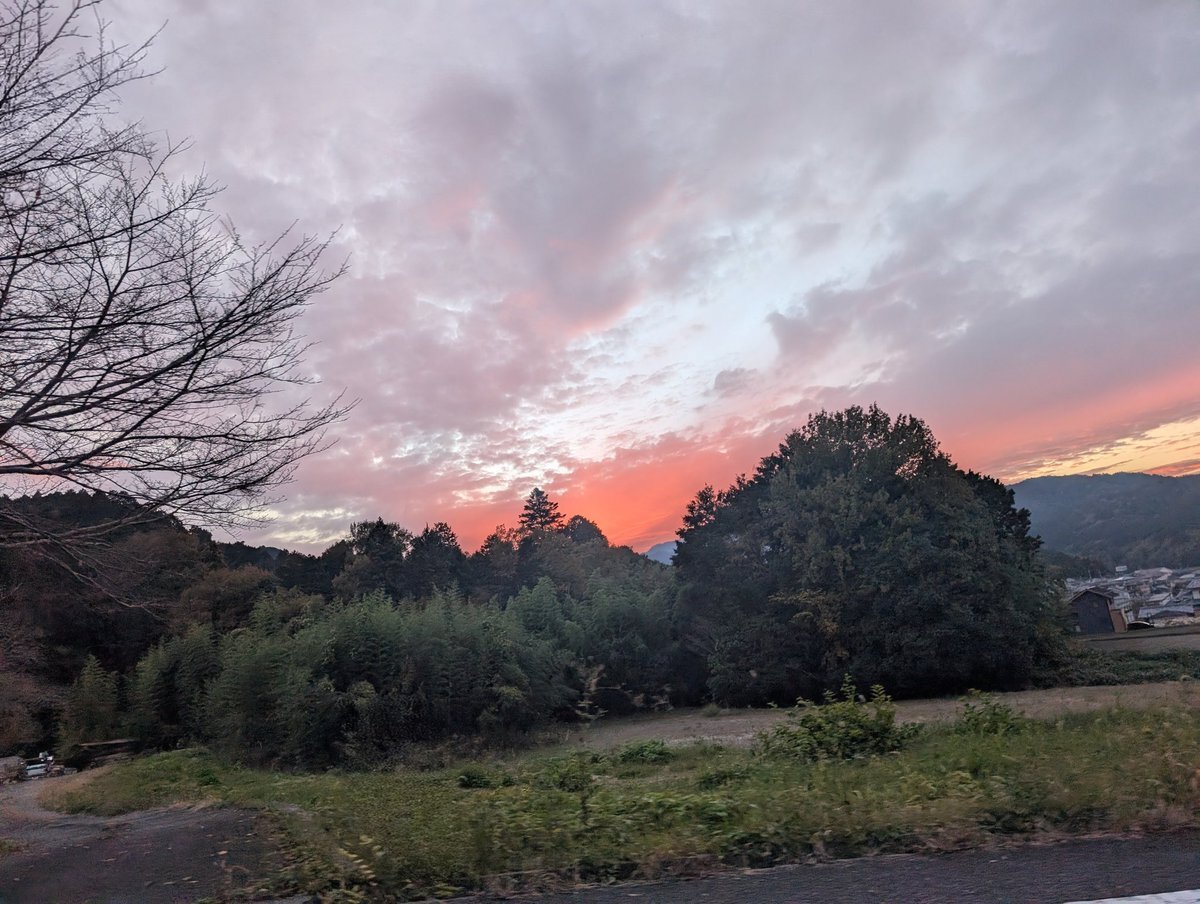 思い出の場所を1歩出ると鉄塔がそびえる空。少し下ると大好きな千日紅を見つけました。皇帝ダリアの反対は3枚目の空。そして元の場所に戻ります。イチョウの木の前で幸せなやつをおねだりでphoto撮影。さて帰るよ、素敵な夕焼け。あっという間に終わった三連休。また明日。 #そらふぉと #はなふぉと pic.x.com/WFh6UZ80sm
