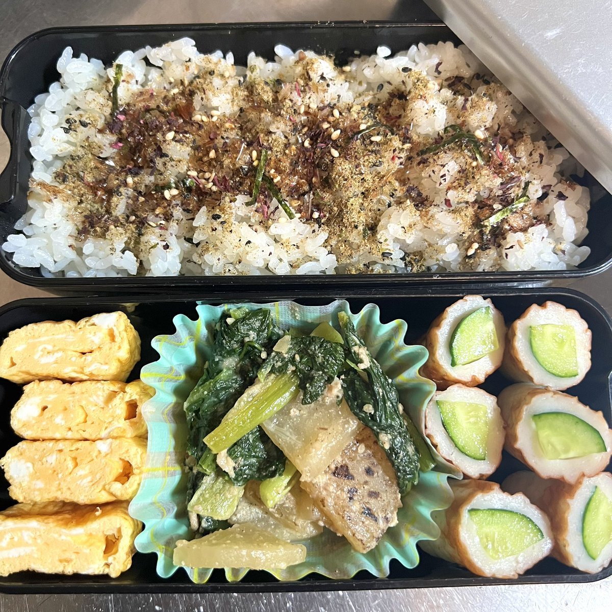 2025/11/5 ①大根と小松菜のごま味噌炒め ②だし巻き卵 ③ちくきゅー 火曜日の気分だけど今日は水曜日 ファイト٩( ᐛ )و #今日の弁当 #偏食っ子 #地味弁 #肉嫌い #ミンチはOK🙆🏻‍♀️ #魚は好き #副菜だけ弁当🥬 #ワンパターン弁当 #弁当箱はアスベル #それでも母はラクしたい pic.x.com/LWGEJCTxt9