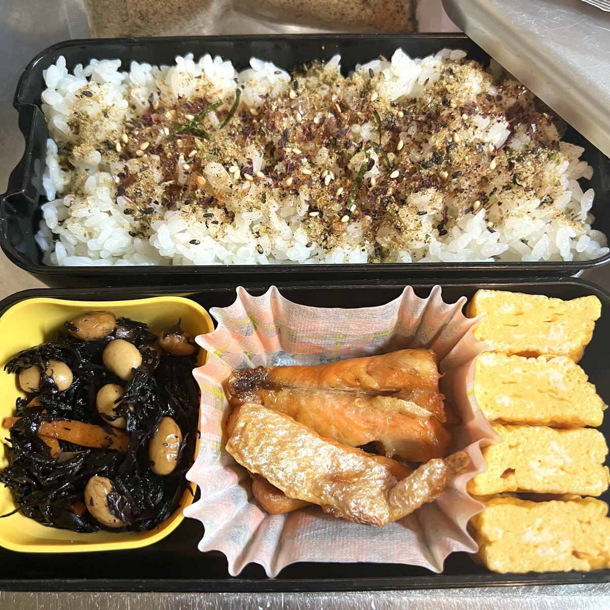 2025/10/28 ①鮭ハラス焼 ②だし巻き卵 ③大豆とひじき煮 朝練&コスバレがんばれー🎃 #今日の弁当 #偏食っ子 #地味弁 #肉嫌い #ミンチはOK🙆🏻‍♀️ #魚は好き #副菜だけ弁当🥬 #ワンパターン弁当 #弁当箱はアスベル #それでも母はラクしたい pic.x.com/ZnO6nrWfp7