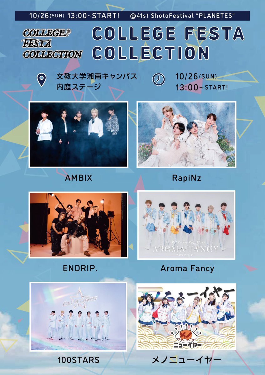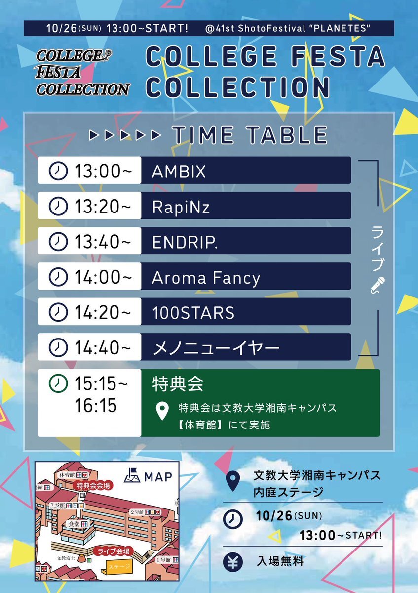 🏫本日のライブはこちら🏫 文教大学(湘南キャンパス) 聳塔祭に出演🎉 10/26(日)13:00-15:00 入場・観覧無料 📍内庭ステージ 🎤ライブ 13:40〜14:00 🗣️特典会 15:15〜16:15 ステージ後は体育館で特典会も実施 ご来場お待ちしてます! #ENDRIP #エンドリ #それはまだ見えない #文教大学 pic.x.com/GeVfelbrrS