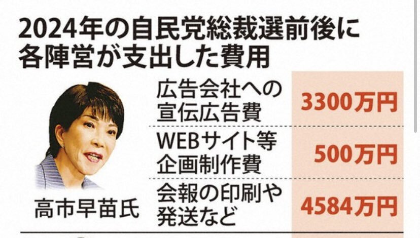 高市氏、宣伝費に8000万円超 24年総裁選 ウェブ関連では 動画制作や交流サイト(SNS)広告会社に「宣伝広告費」3300万円 「WEBサイト等企画制作費」500万円 高市氏側に、SNSを駆使する石丸陣営の手法を取り入れる狙いがあったとみられる。 そりゃあ、ネトウヨバイトが沸くわけですね。