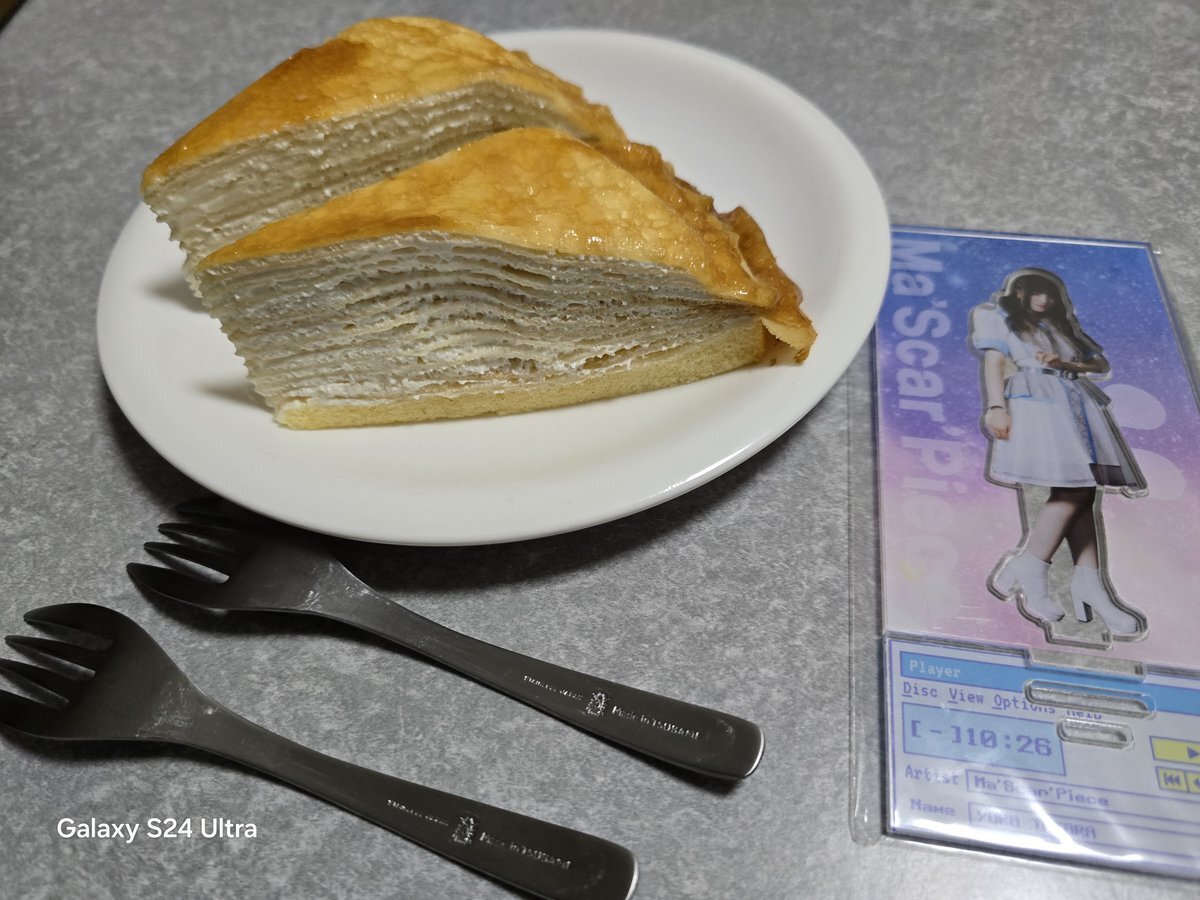 誕生日おめでとうございます! 配信とスペメもありがとうございました! スペメでも言及したミルクレープ! 2つなのは俺とゆらちゃんで1個ずつ食べられるからです😍 #たたゆら部 #多々良ゆら #マスカーピース ALT pic.x.com/muzp3RPFe5