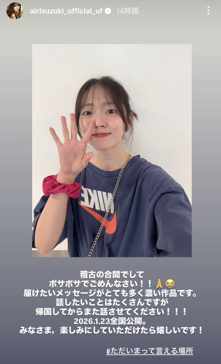 ねぇねぇ、いつの間に映画撮影してたの?22日のあいりがたりで、「推し上司とロンドンの間でもういっこ仕事があったのでそのために髪を切った」って語ってたけど、まさか映画とは!!それも主役とは!!朝からびっくらこいたわ! #鈴木愛理 #あいりまにあ #ただいまって言える場所 x.com/tadaima_movie_…