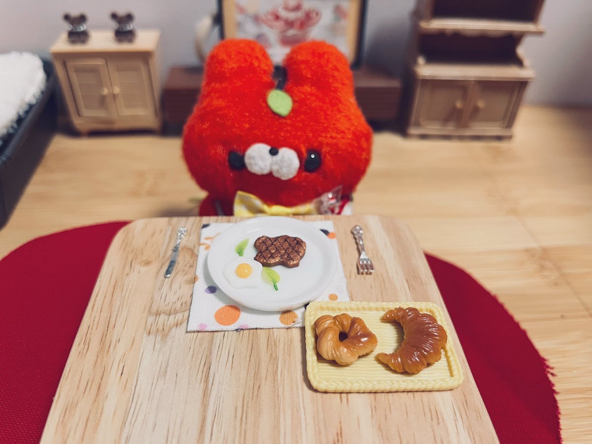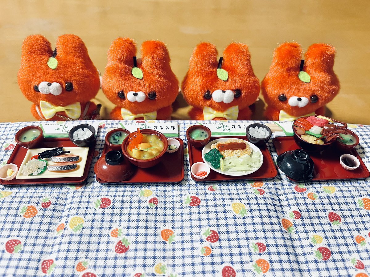 赤チェックのしゅわしゅわたっちさん、一度は連れてこなきゃ!でうさぎさんと🐰🍅 リボンがお揃いでぴったりだったね〜🎀✨ サラダにもへんし〜ん🪄してるね🥬 #たっちさん保護者の会 pic.x.com/Eo5FA04Zrr