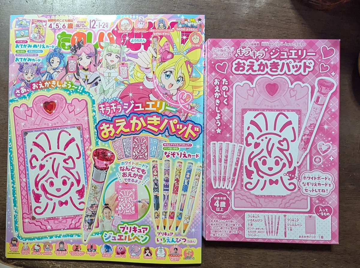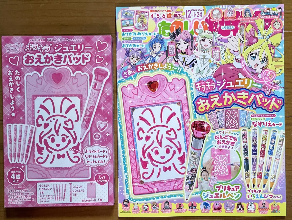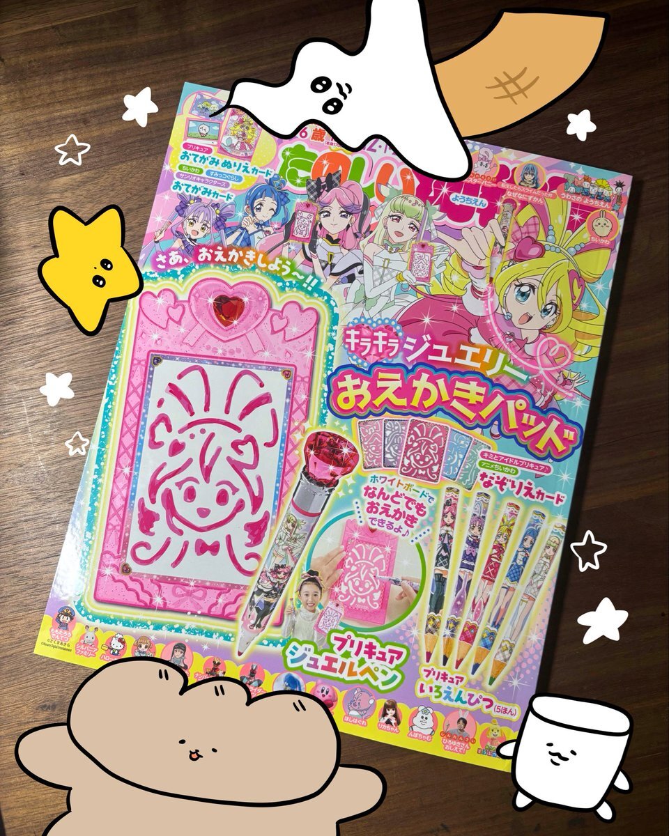 #たのしい幼稚園 12・1・2月号好評発売中❣️ 付録は「キラキラジュエリー おえかきパッド」💎✨ #キミとアイドルプリキュア の『プリキュアジュエルペン』に、『プリキュアいろえんぴつ』5本付き🩵『なぞりえカード』をセットするだけで、プリキュアやちいかわが簡単に描けちゃいます😍 pic.x.com/xKTj4SlIAb