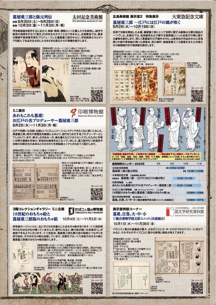 【#展覧会 情報📢】 ミニ企画「18世紀のおもちゃ絵と蔦屋重三郎版のおもちゃ絵」tabashio.jp/event/index.ht… 会場:たばこと塩の博物館 会期:2025年10月4日(土)〜11月5日(水)
