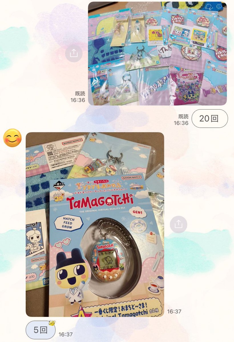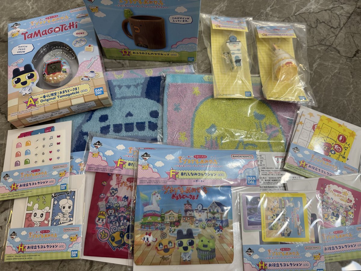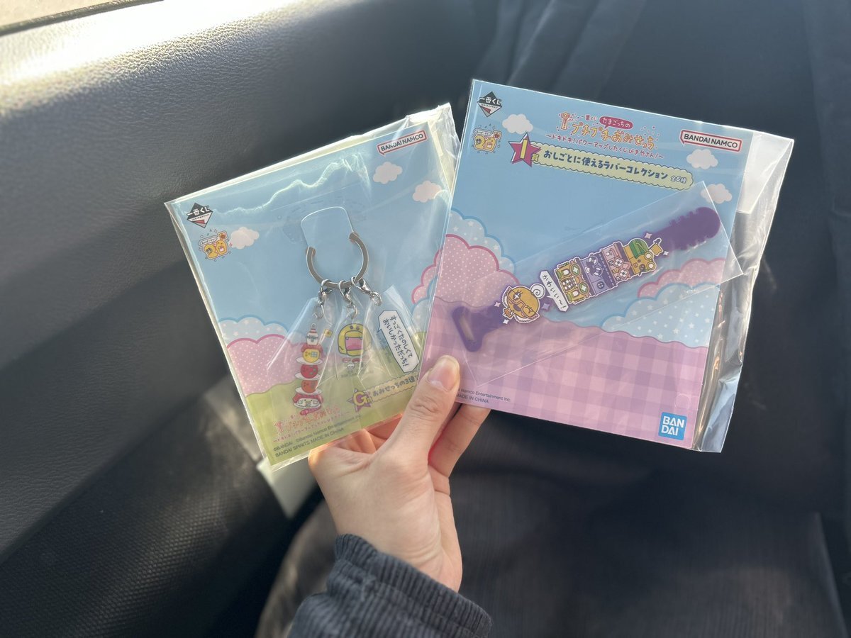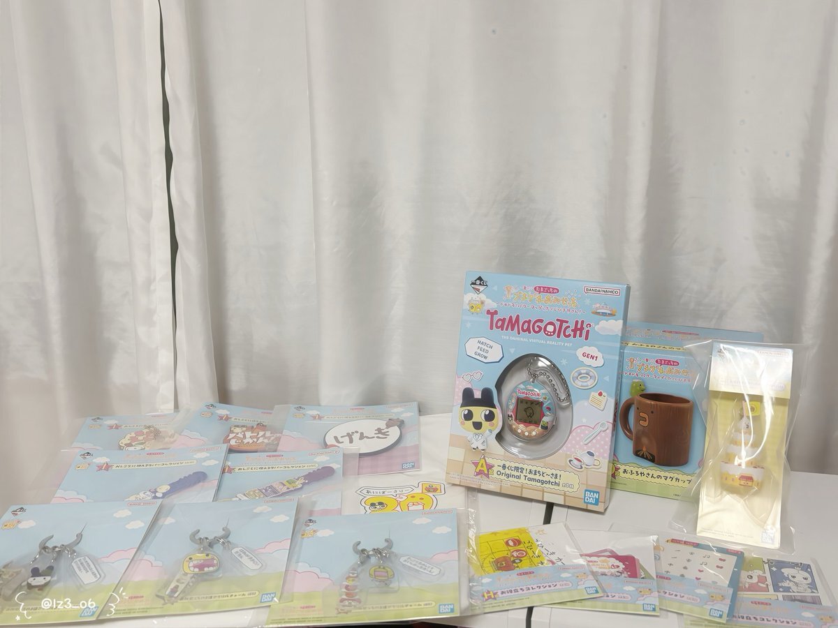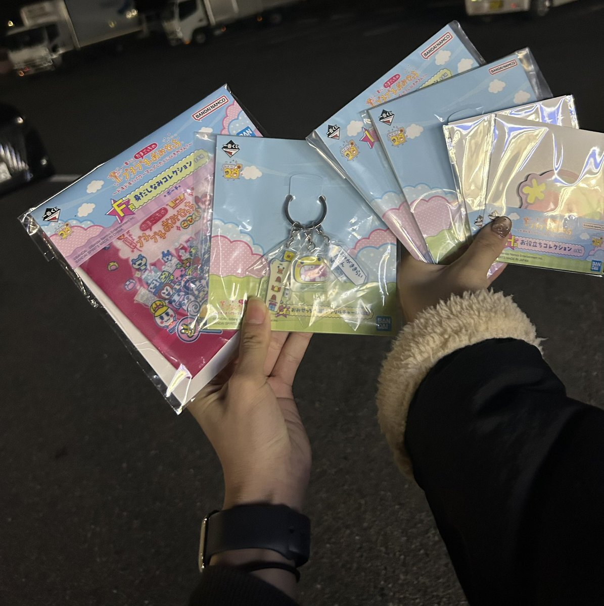 旦那に頼んで朝からローソン行ってもらって良かった🤗 ほぼフルロットから3回引いてもらって上位賞出なくて諦めきれなくてもう3回引いてもらって神引きしてもらった 嫌なことあったけど仕事頑張れたよ ありがとうすぎる #たまごっち一番くじ pic.x.com/OSgLauE349