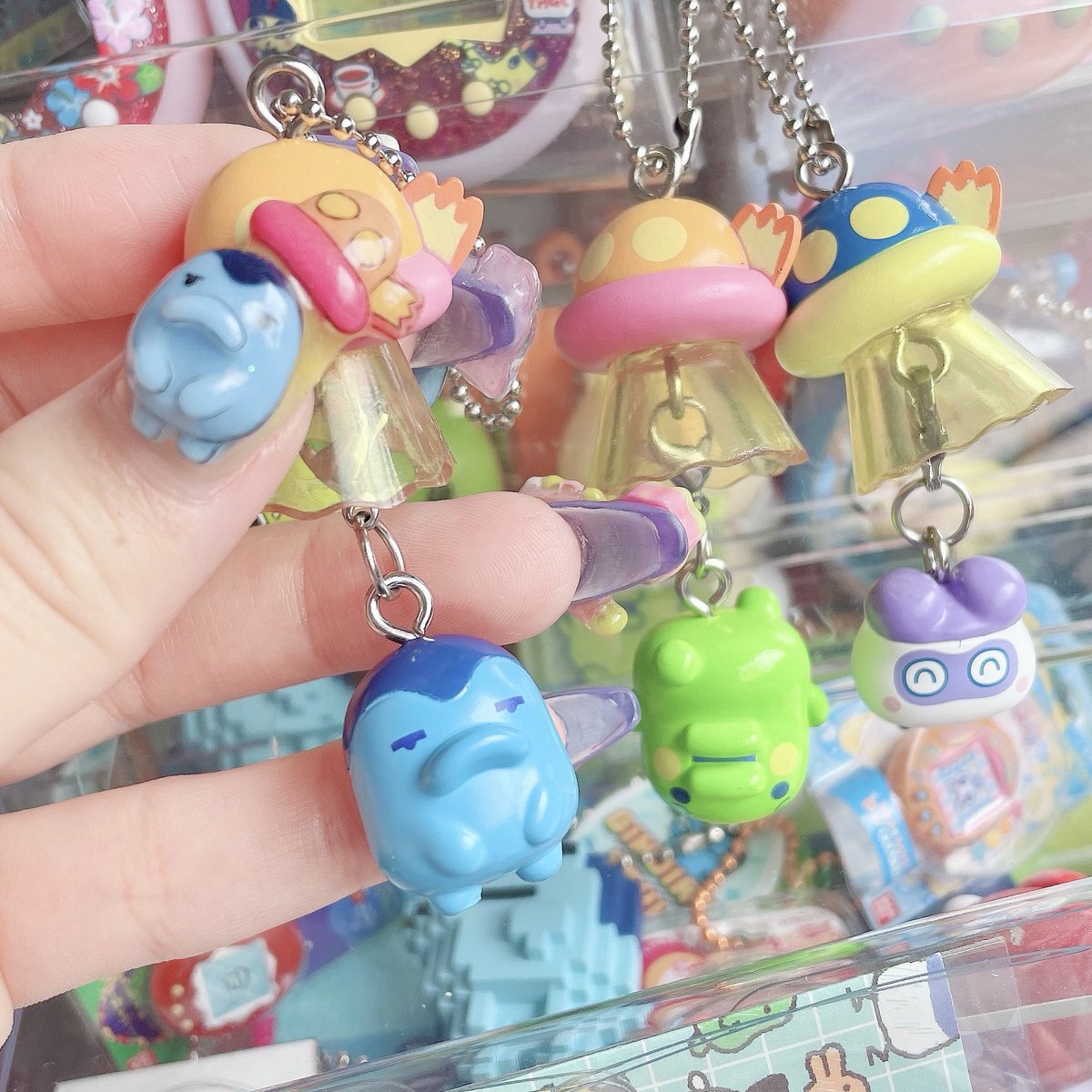 先行発売していた #たまごっち のガチャガチャ 次女の好きな #くちぱっち を狙うも #ぎんじろっち が3回連続で出て来た😭 5回目でやっとお目当ての『くちぱっち』GET ぎんじろっちを1つ開けて ウナを吊るしてみた🛸 色んなめじるしアクセサリーを吊るしたら楽しいかも🎶 #たまごっちUFOスイング pic.x.com/izxdjCQ51t