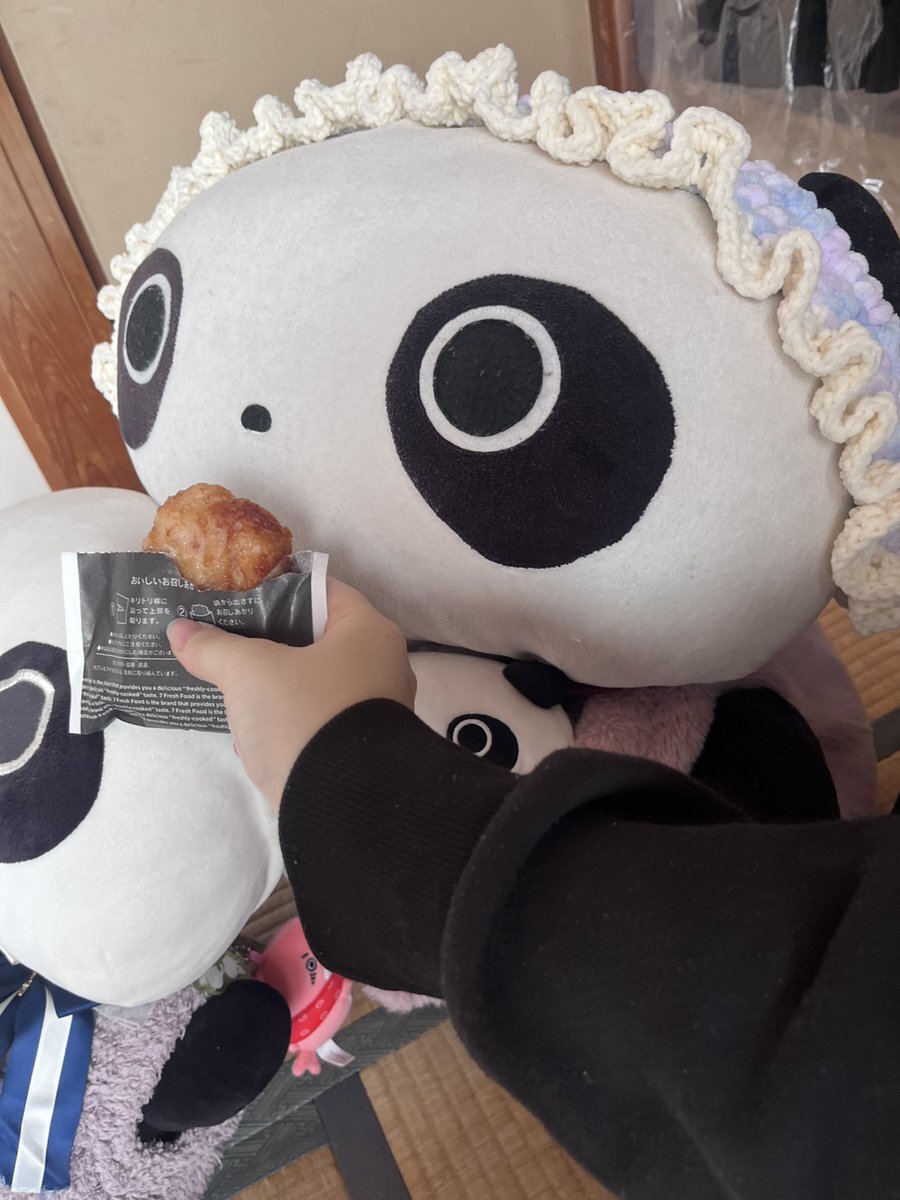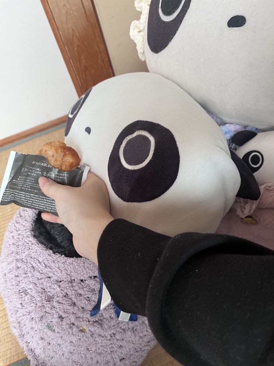 次女に安売りの鶏の唐揚げもらって ご満悦のたれちゃん達。 母はたれぱんだパジャマ買ってきたよー #たれぱんだ #今日もよくたれています pic.x.com/4qEktaHk3y