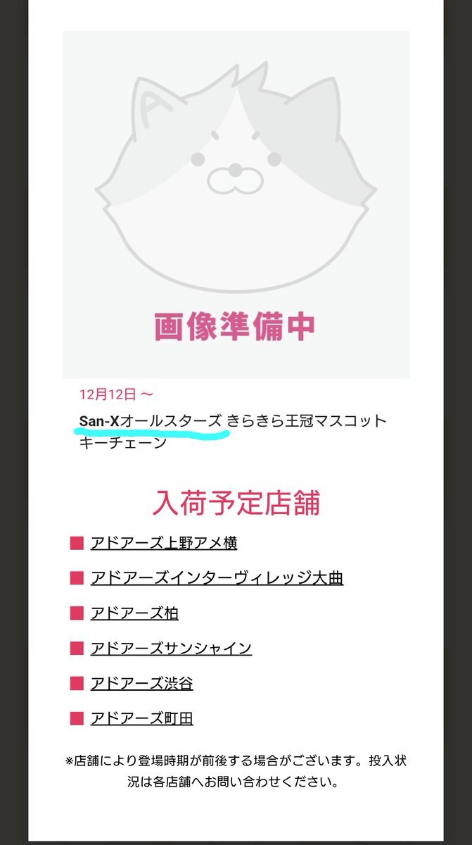 ほほう!「サンエックスユニバース マスコットチャーム」300円 12月下旬ごろ発売予定です! #たれぱんだ #リラックマ #ガチャガチャ #めじるしアクセサリー pic.x.com/GN5zhHnnCF