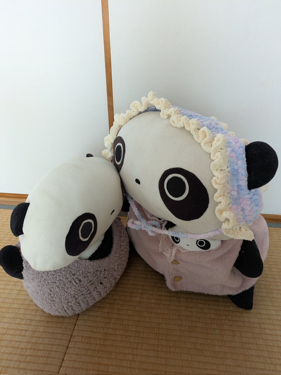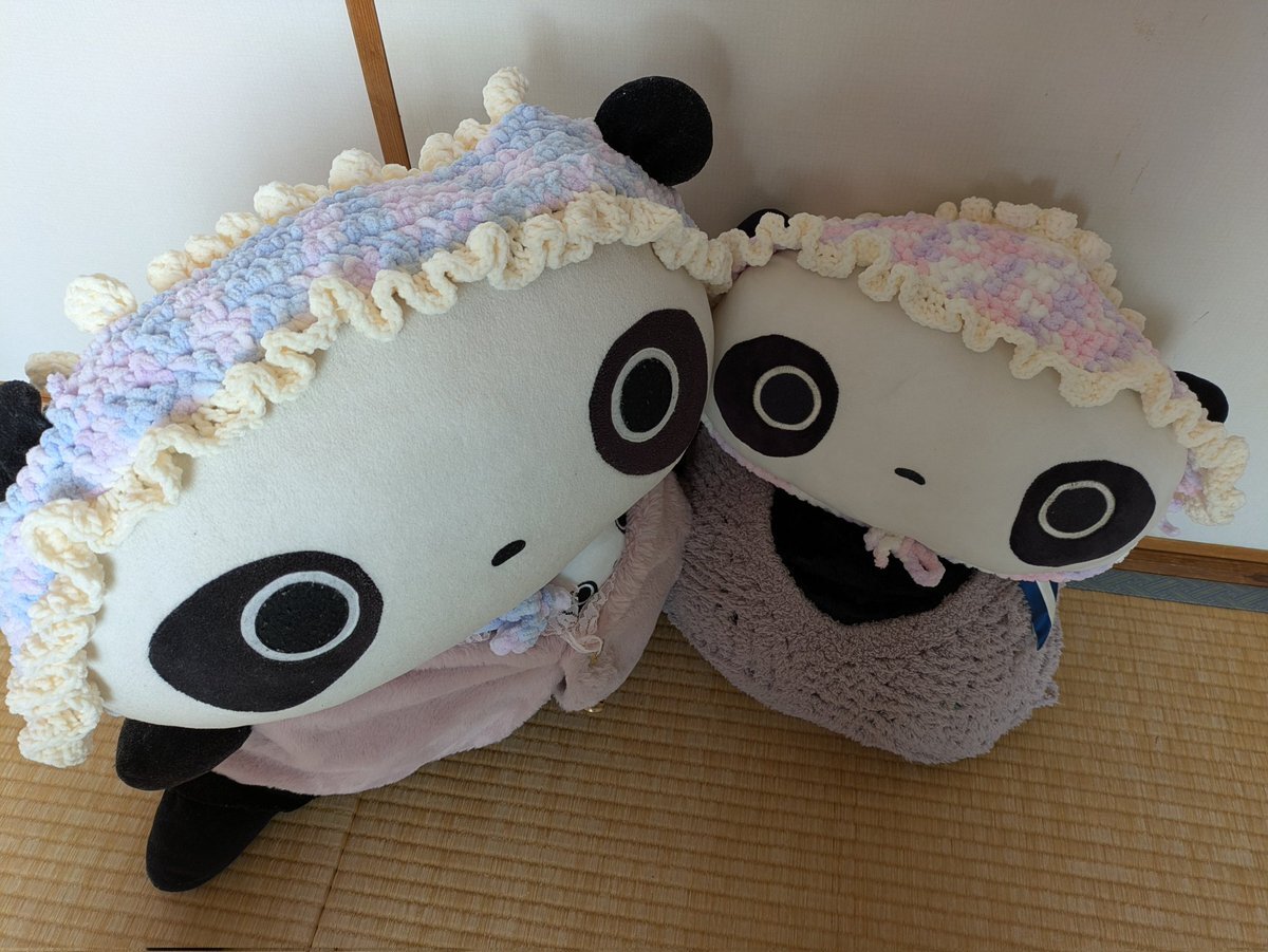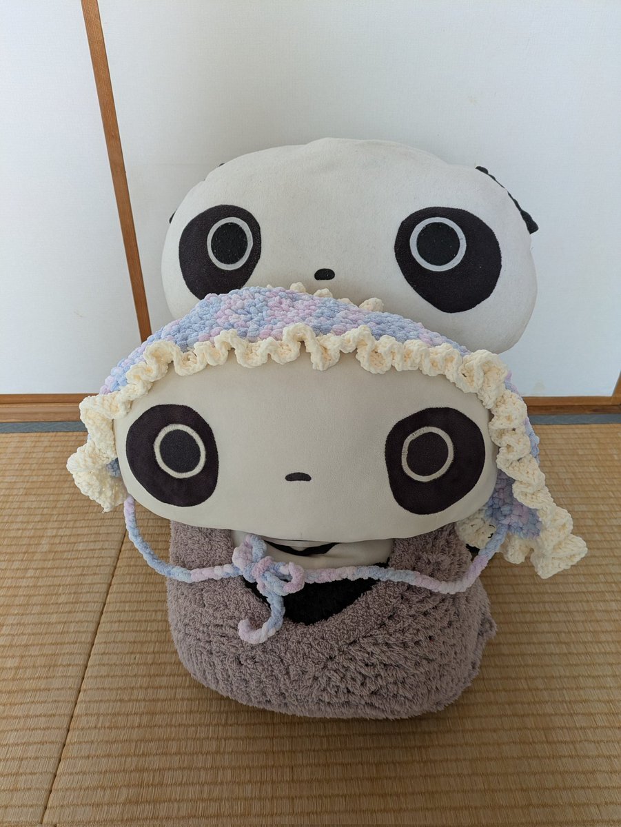 寒さ対策に帽子を編んだ次女。 編み物熱に火がついたのか 大きめたれちゃんにバブーシュカを 作ってあげました 小さめたれちゃんには少し大きいね 可愛いけど結ぶところを間違うと 泥棒みたいになるので気をつけましょう🤗 #たれぱんだ #今日もよくたれています pic.x.com/uoLXeJWgsQ