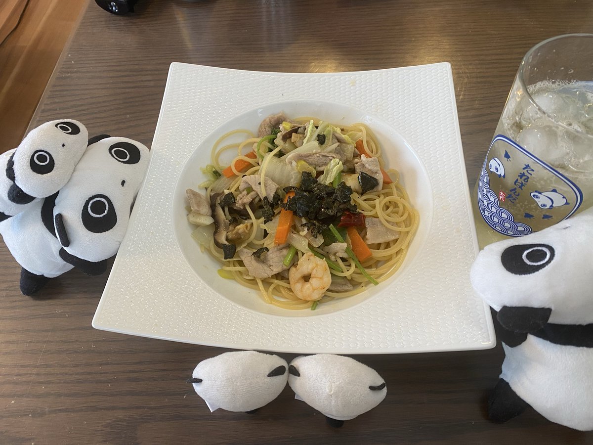 今日のお昼は夫が作ってくれたピリ辛中華パスタでハイボール!とても美味しかったです。#たれぱんだ #ぬい撮り pic.x.com/xtwPf1qvF9