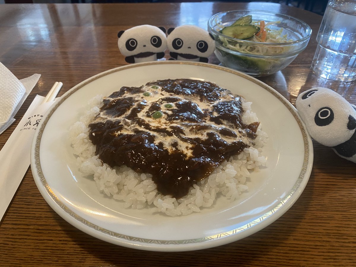 今日のお昼は、#ビストロ小泉 の特製ハヤシライス。とても美味しかったです。#たれぱんだ #ぬい撮り #小樽グルメ pic.x.com/b9UWwZmNc5