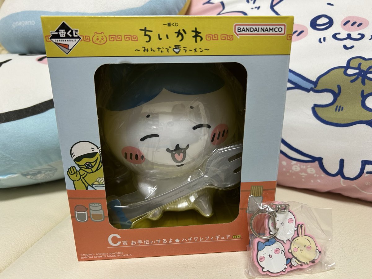 職場の介護士さんが「ちいかわ好きでしたよね?よかったら‼️」って一番くじ景品のハチワレフィギュアとキーホルダーくれました🥰めっちゃ嬉しすぎる🥹💕 #ちいかわ一番くじ #ハチワレ #ハチワレフィギュア pic.x.com/mTanC6NMY3