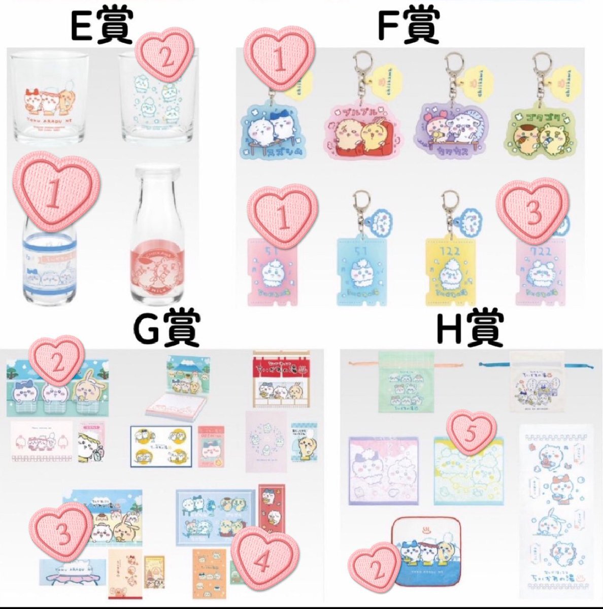 【ちいかわ1番くじ交換&譲渡】 譲▶︎画像1枚目の数字分 求▶︎画像2枚目 特にF賞ハチワレ 買取▶︎E賞はGH賞複数買取のみ対応 ⚠️ガラスなので手渡しor宅急便推奨 比率違い応相談でお願いいたします🙇♀️ GH賞複数出せますのでお気軽にご相談ください #ちいかわ一番くじ pic.x.com/wzjLPAIf70