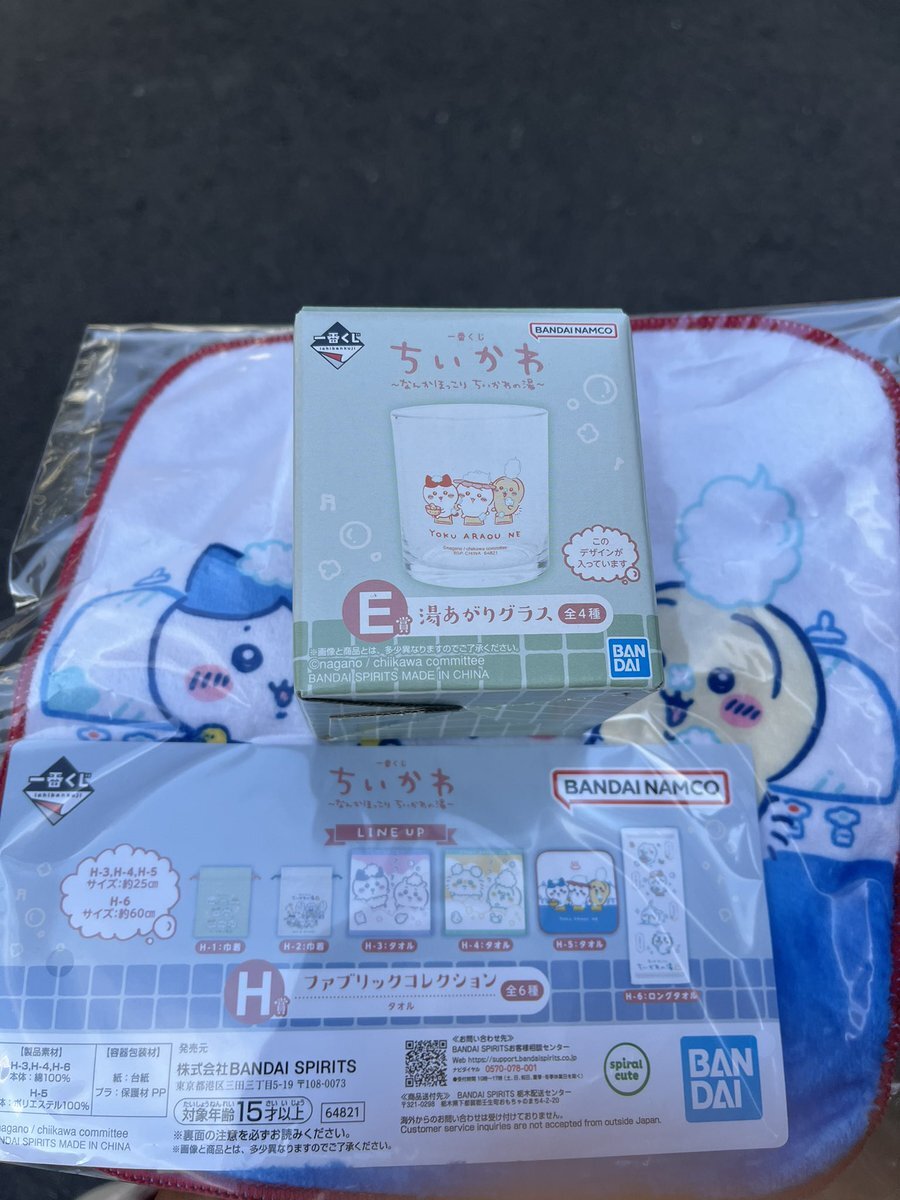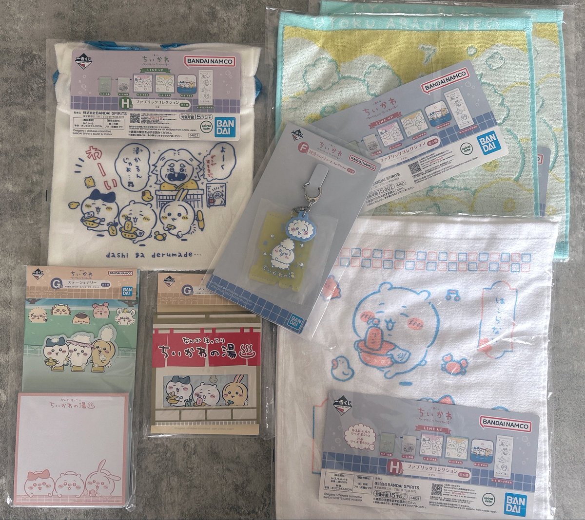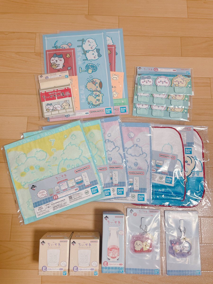 ちいかわ 一番くじ 交換お願いします。 譲 C賞 ぷはぁ~!湯あがりフィギュア 求 E賞 シーサーの牛乳瓶(こちらは絶対)と H賞 ファブリックコレクションのミントグリーンの巾着 またはG賞 ステーショナリー 写真の物 1:2で交換お願いします🙇♀️ 同日発送希望。 #ちいかわ一番くじ pic.x.com/dfA0UJIBYn