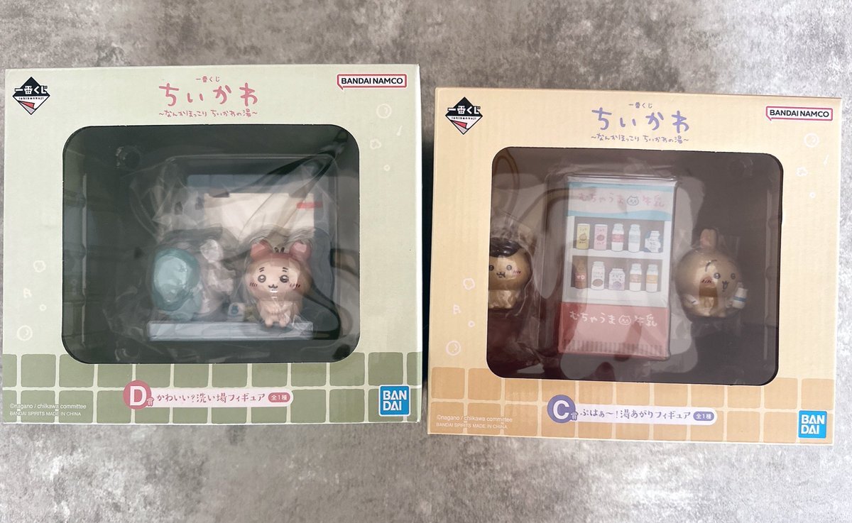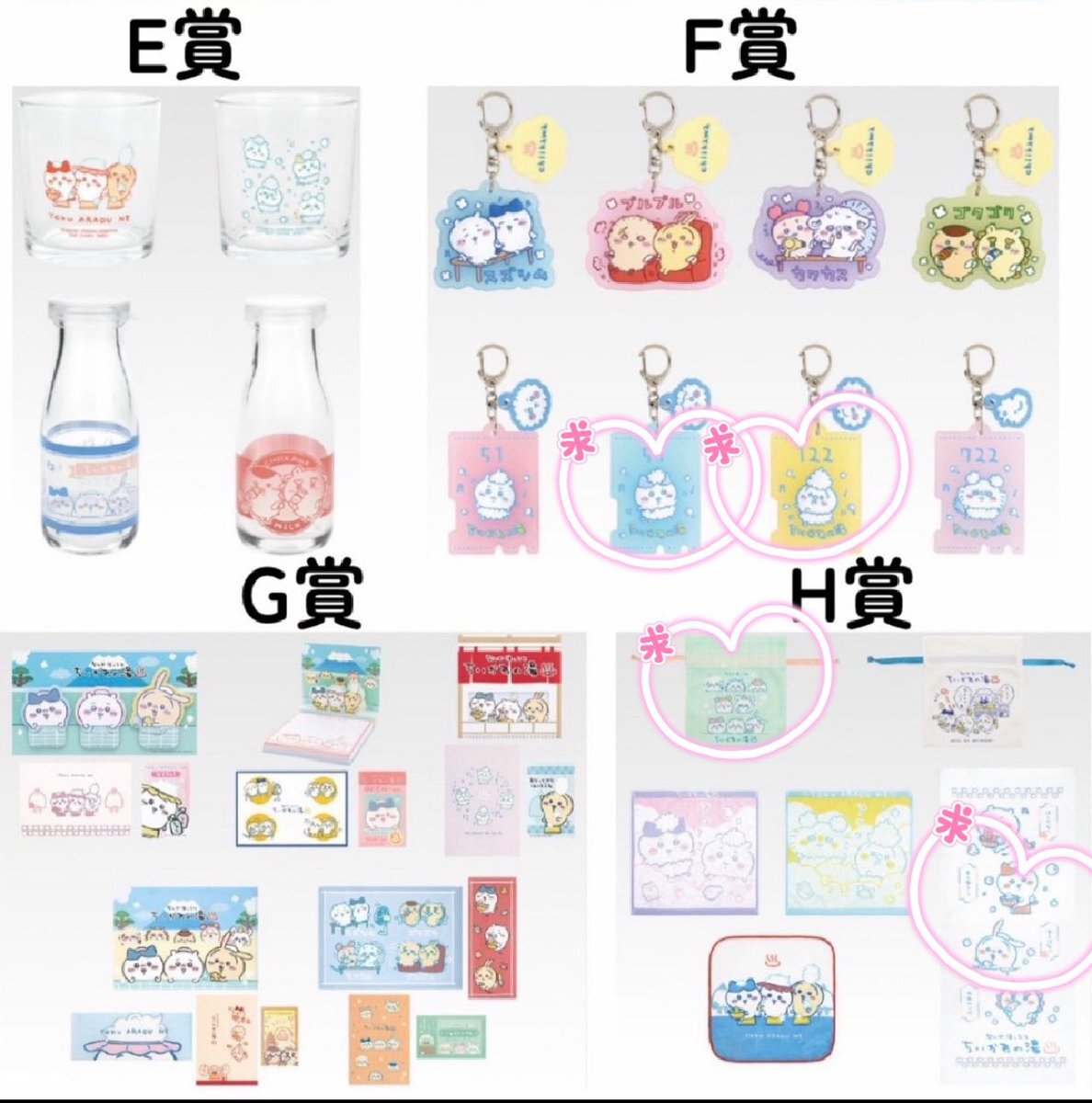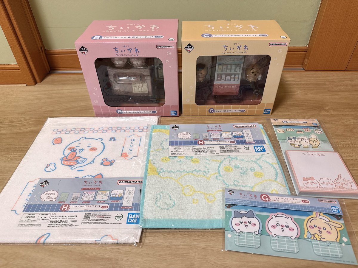 ちいかわ 一番くじ 交換お願いします。 譲 C賞 ぷはぁ~!湯あがりフィギュア 求 E賞 シーサーの牛乳瓶(こちらは絶対)と H賞 ファブリックコレクションのミントグリーンの巾着 またはG賞 ステーショナリー 写真の物 1:2で交換お願いします🙇♀️ 同日発送希望。 #ちいかわ一番くじ pic.x.com/dfA0UJIBYn