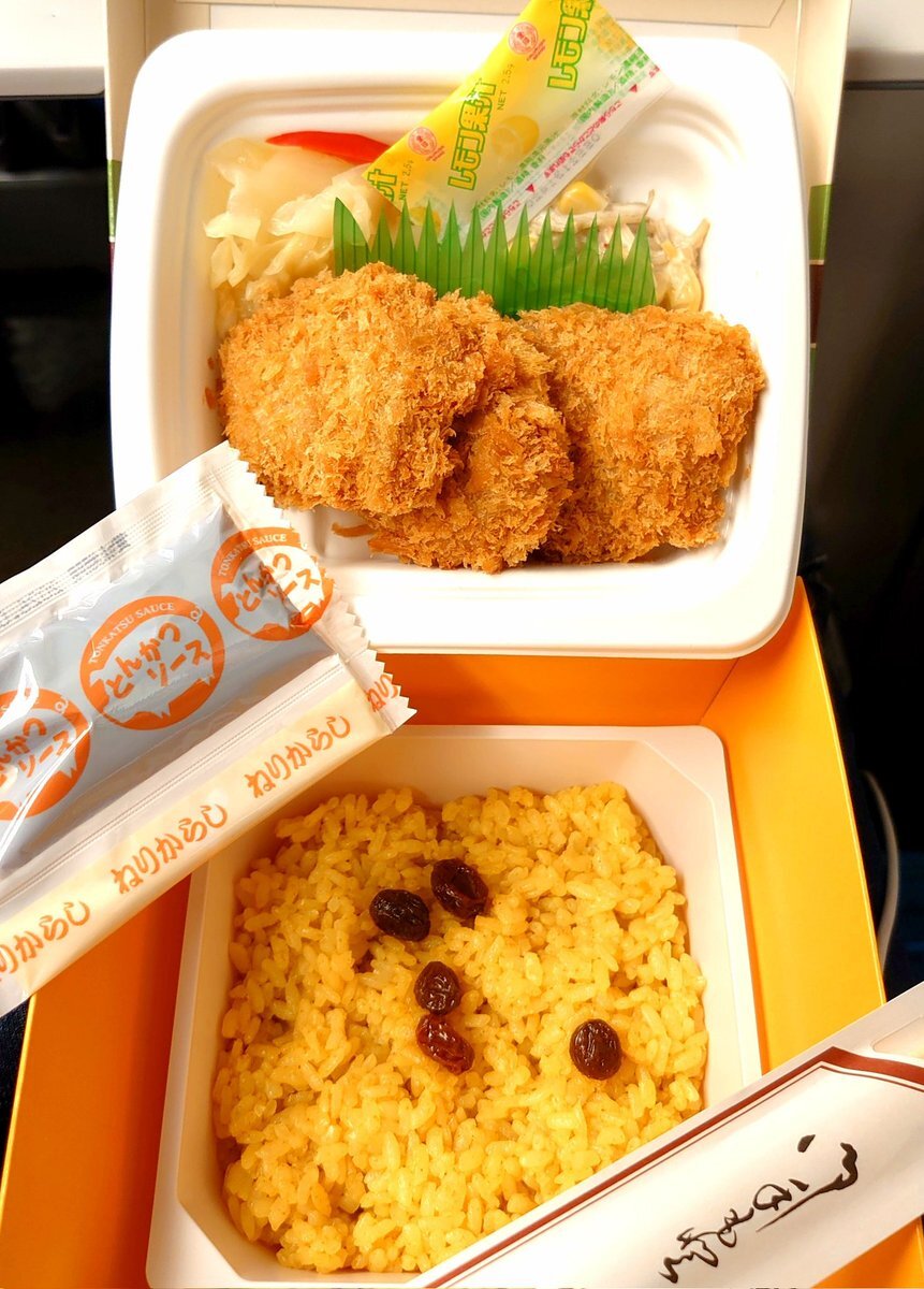 本日の駅弁は昭和の復刻トンカツ弁当!ご飯はターメリックライスかと思いきや食欲をそそられる濃いめのカレー風味で嬉し♪♪ #ちぇりいのGoToばあすでい2025 pic.x.com/ZqlzJoESbD