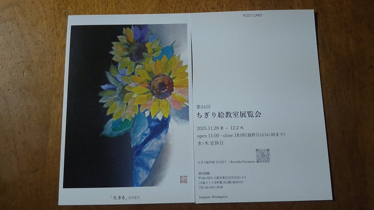 須田画廊でございます 第26回ちぎり絵教室展覧会 11月28日(金)〜12月2日(火) 11時〜18時(最終日のみ16時) #ちぎり絵 #古川宣子 #須田画廊 pic.x.com/c3zQa12UQD