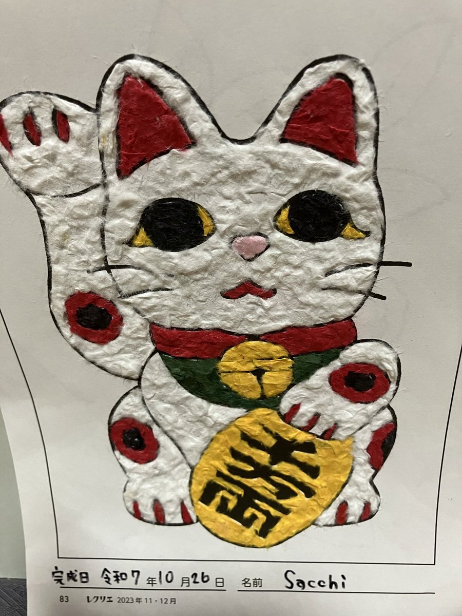 MANEKINEKO 作ってみました。 レクリエ 2023年11・12月 季節のちぎり絵 世界文化社   #ちぎり絵 #招き猫 #いい事ありますようにpic.x.com/3DeXRfhW3D