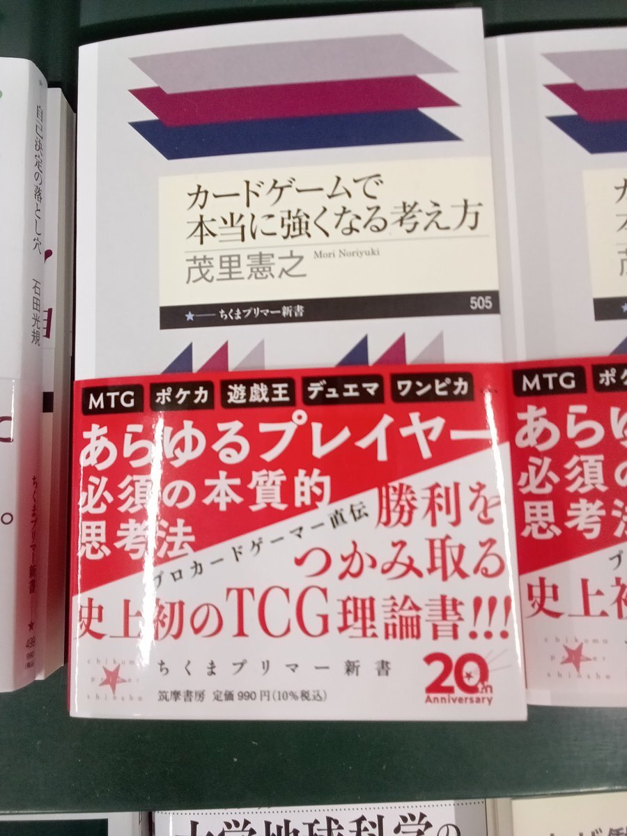 【新書】お待たせいたしました!!売り切れておりました、『カードゲームで本当に強くなる考え方』の追加が、昨日10/28(火)入荷いたしました!! プロカードゲーマー直伝!! #茂里憲之 #ちくまプリマー新書 #筑摩書房 pic.x.com/sPUr0sP08W