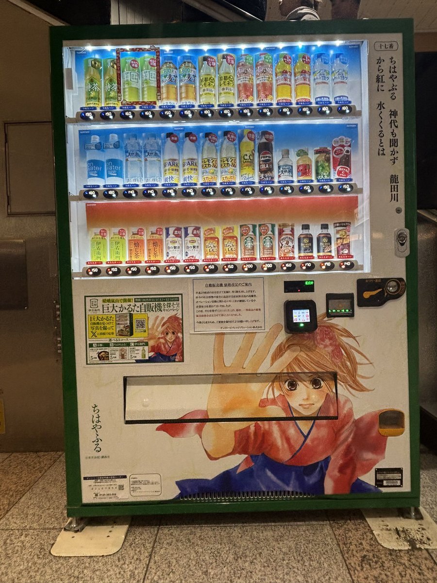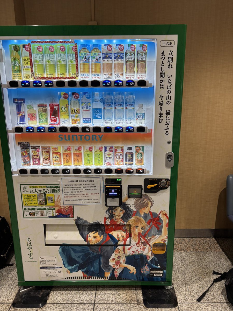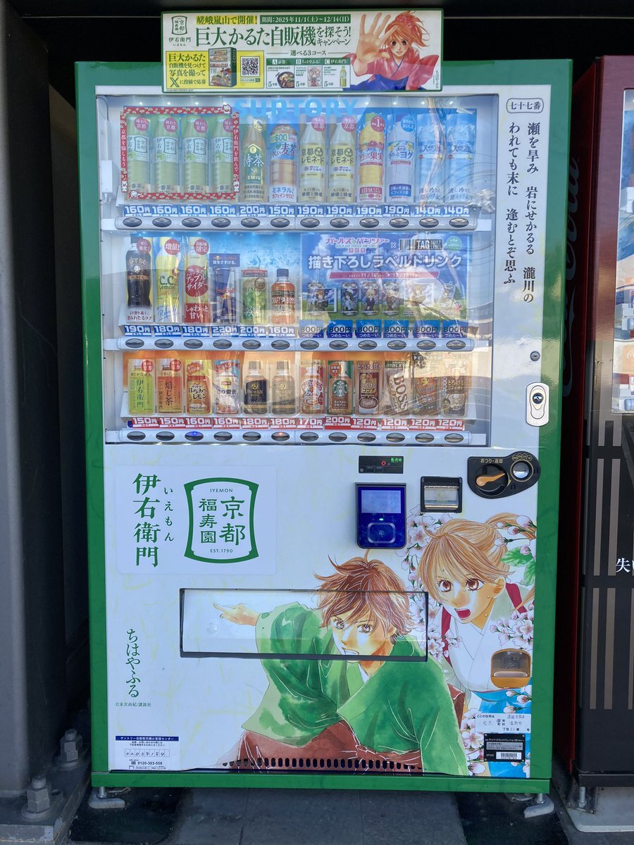 #伊右衛門巨大かるた自販機 #ちはやふるコースに応募! 9ヶ所目! 最後に行った自販機 他の箇所と離れてたし、予定の時間が迫ってて行くか迷ったけど来れて良かった😭 ちはやふるコラボ自販機制覇!!!!👑✨️✨️ pic.x.com/hTvj1szOf2